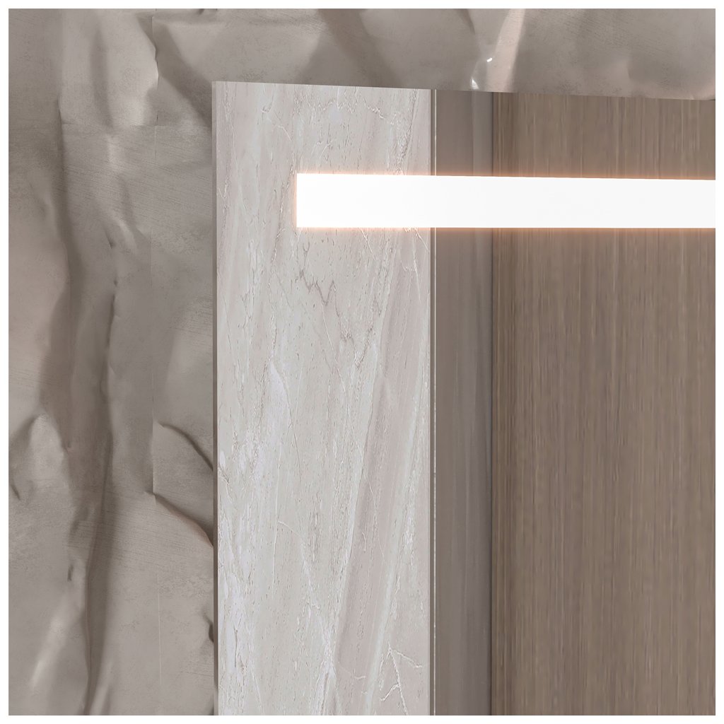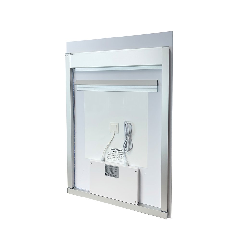 Elegáns tükör LED világítással. A tükröt a tükör elején elhelyezett érintésérzékelő aktiválja. A tükör konzolokkal (akasztókkal és megfelelő fali kampókkal) van felszerelve a függőleges felakasztáshoz. A világítással rendelkező tükröknél javasoljuk, hogy a konnektort a „tükör közepére” helyezze. A tápkábel hossza 0,8 m, ami kényelmes telepítést tesz lehetővé.A megvilágított csíkok mérete 40x2,5 cm.