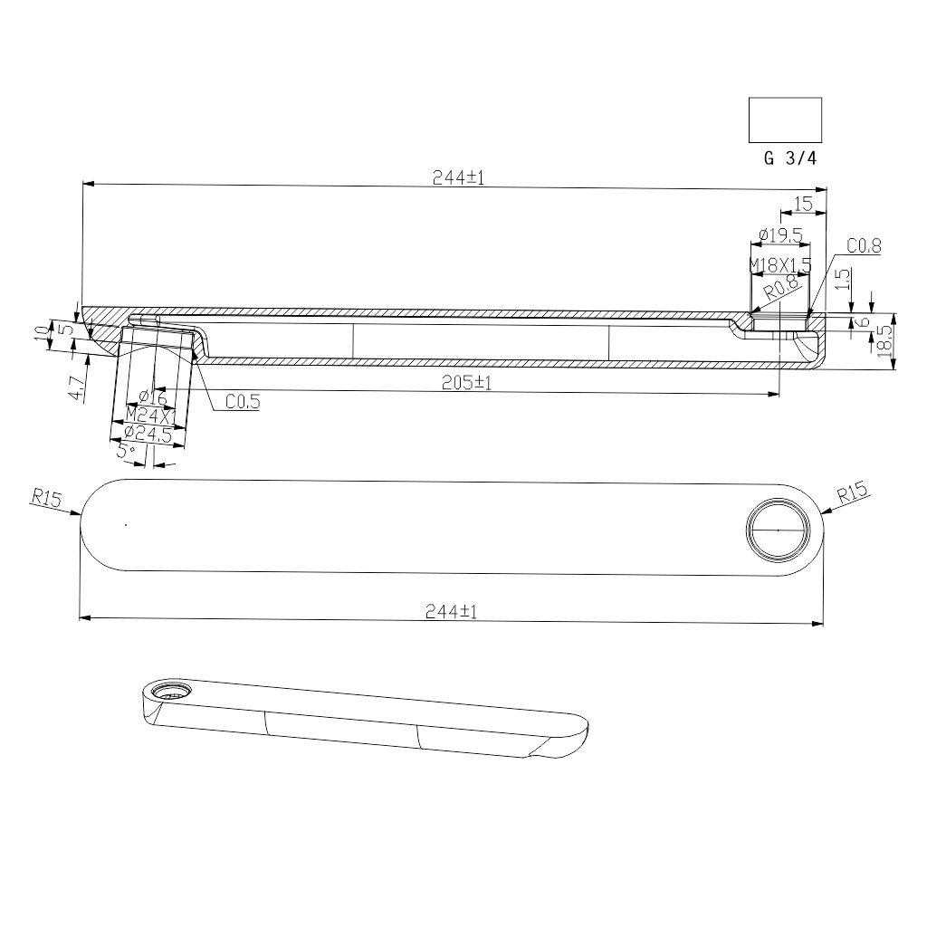 Lapos, egyenes kar 3/4"-os összekötő anyával, 200 mm teljes hossza. A kar kiváló minőségű krómozott sárgarézből készült. A kar Viana CBE30201 akkumulátorokhoz készült.Kiegészítő paraméterek