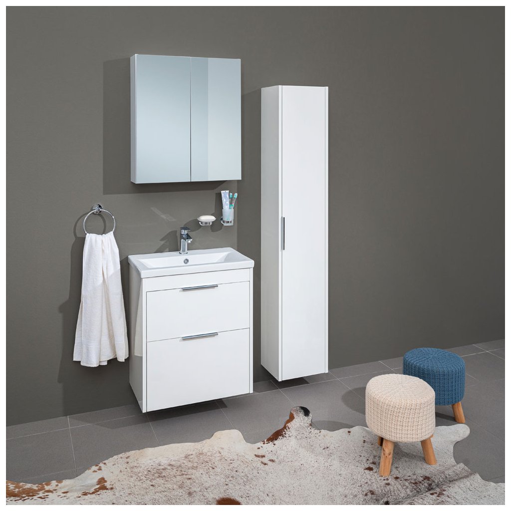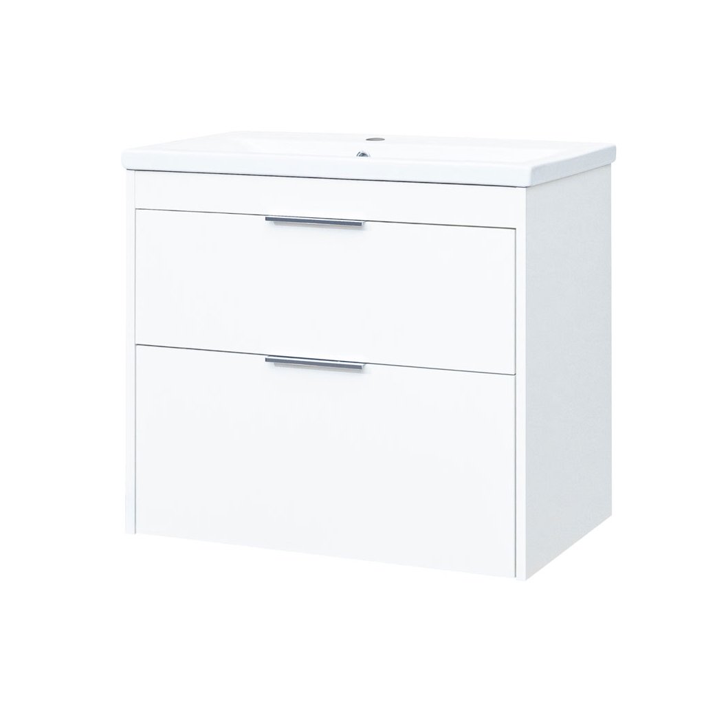 A Vigo fürdőszobabútor sorozat lehetővé teszi, hogy a szekrényeket sokféle változatban kombinálhassa. Így lehetséges a nagy fürdőszobák komplex kombinációi és a minimalista megoldások modern kialakítása. A fiókok dizájnos krómozott fogantyúkkal és márkás, lassú záródású futókkal vannak felszerelve. Két színkombináció közül választhat, fehér fényű, Riviera tölgy. A szekrények lézerrel vágott élekkel rendelkeznek, összeszerelve szállítjuk, és mindegyiket felakasztják.Bútorkerámia mosdókagyló egy furattal 38 mm élvastagságú állványkeverőhöz. Ezekkel a mosdókagylókkal kielégítik az Ön igényeit az egyszerű és egyben vonzó fürdőszobai felszerelések iránt, vonzó áron. Ezeknek a mosogatóknak az előnyei kétségtelenül funkcionalitásuk és vonzó megjelenésük. A mosogató bútorokhoz készült.