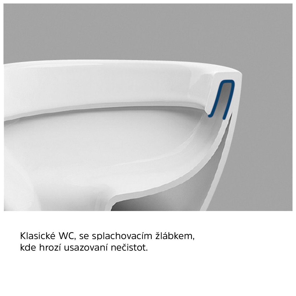 A Rimless a WC öblítésének innovatív módja. A jól átgondolt vízgazdálkodási módszer biztosítja a WC hatékony öblítését és a WC csésze könnyű tisztítását is.A gerincvelő új formájának köszönhetően megszűnik az edény széle alatti öblítővályú bonyolult tisztítása, amelyet a klasszikus hajtókarokon alkalmaznak, és ahol tömeges baktériumok, szennyeződések és üledékek képződnének.