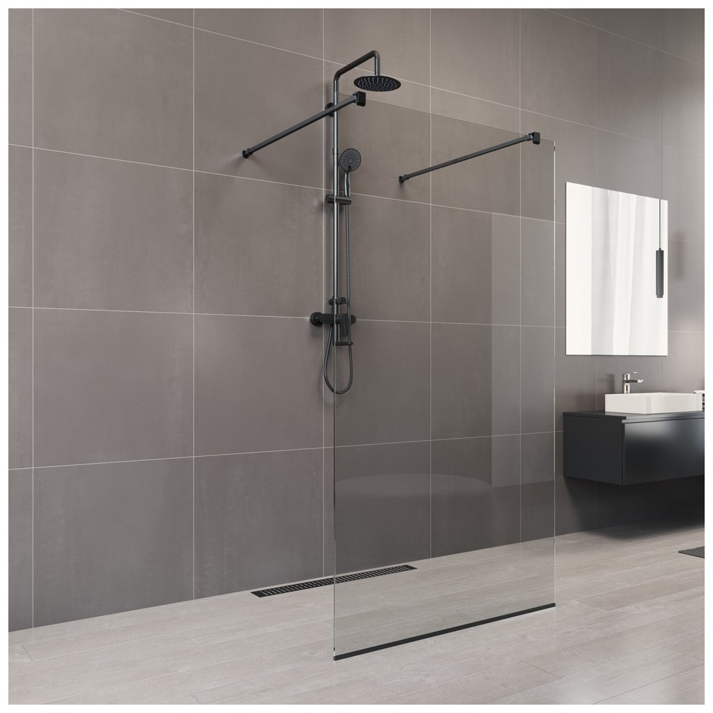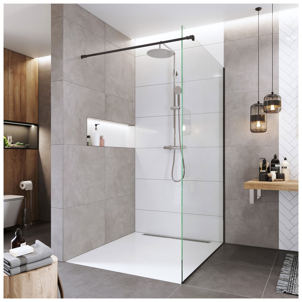 1x WALK IN zuhanyfal (üveget tartalmaz, 1x rögzítőkart, alsó sínt)