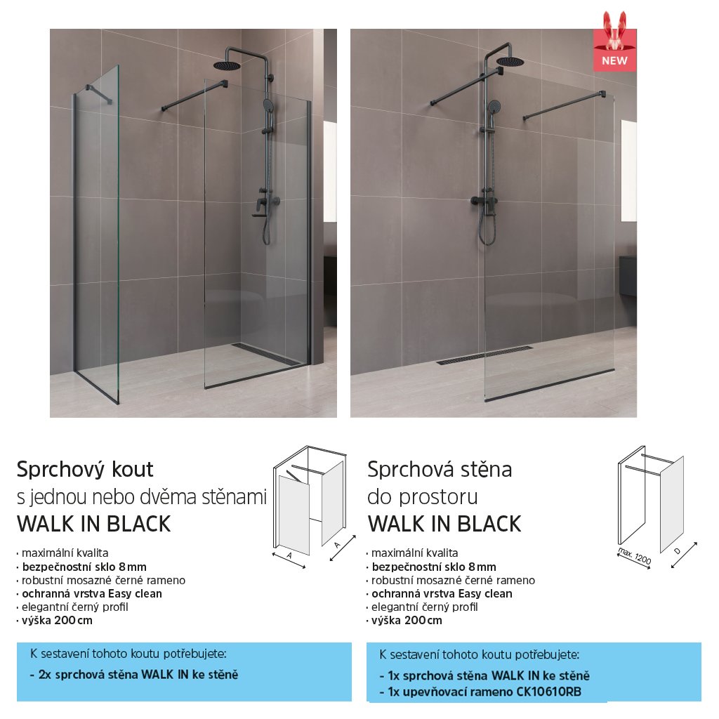 A WALK IN zuhanyfalak az egyetlenek, amelyek valóban alkalmazkodnak Önhöz. Építse fel zuhanyzóját méretre. A WALK IN zuhany több lehetséges kombinációban is összeállítható. A biztonsági üveg stabilitását elegáns fém támaszték és falra szerelés esetén állítható oldalprofil is biztosítja, ami nem zavarja a teljes sarok formai tisztaságát. Ez azonban nem hermetikusan lezárt termék.