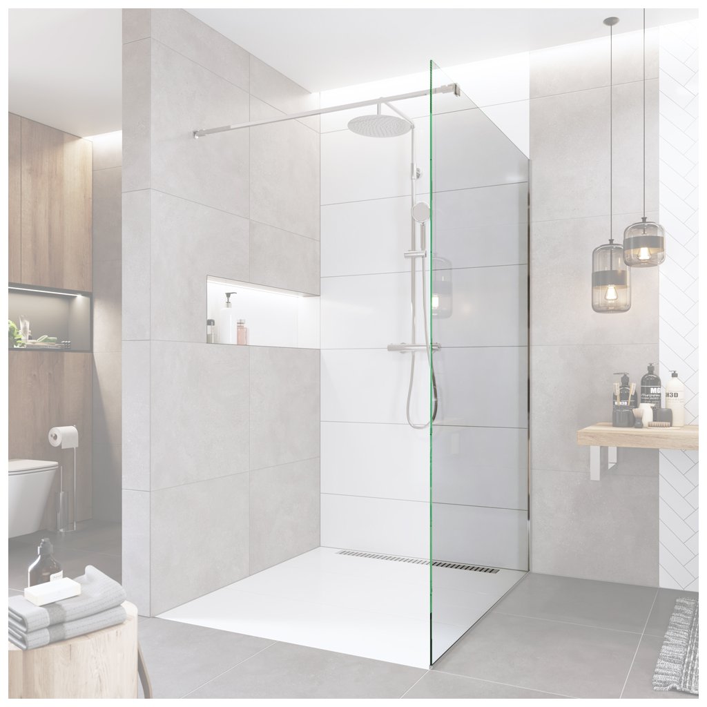 1x WALK IN zuhanyfal (üveget tartalmaz, 1x rögzítőkart, alsó sínt)