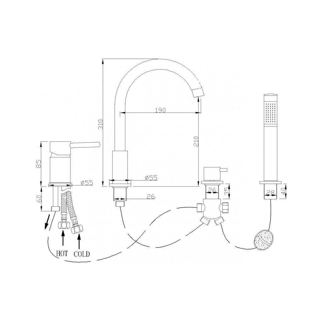 MEXEN ALMA fürdőkád 4 lyukú csaptelep, fekete, 75032-70