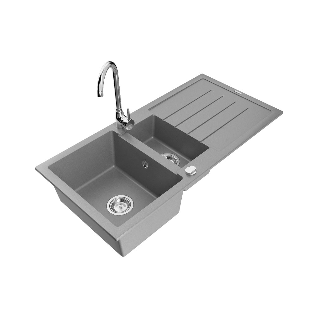 Mexen Andres 1,5 kamrás gránit konyhai mosogató csepptálcával és Telma konyhai csapteleppel, szürke, 6515-71-670200-00