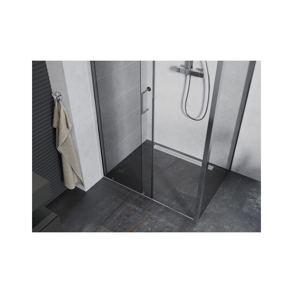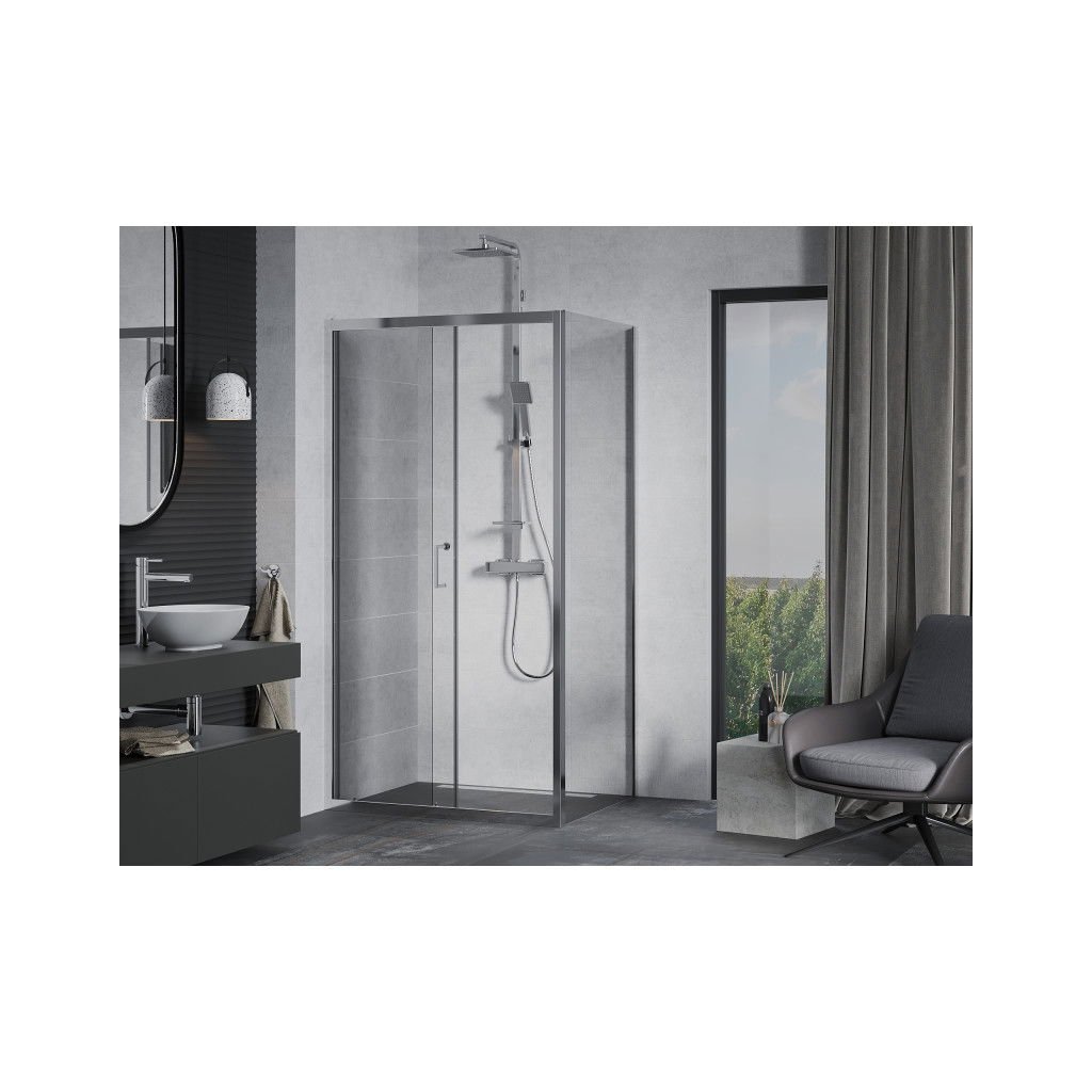 A Mexen Apia sorozat zuhanykabinja remek választás 5 mm-es edzett üvegből, átlátszó kivitelben. A tolózuhanyajtók megbízható dupla görgőket tartalmaznak, amelyek sima és halk csúszást garantálnak. A nyitáshoz megfelelő fém fogantyút használnak. Az üvegen található speciális bevonat megkönnyíti a mosást, és lehetővé teszi, hogy hosszabb ideig élvezze a tökéletesen átlátszó és fényes üveget. Az edzett és biztonságos üveg- és ajtóburkolatok magasfényű krómmal bevont rozsdamentes acélból készültek. A küszöbös alumíniumprofil tökéletes tömítettséget garantál. A szerelés zuhanytálcára vagy csempére is lehetséges (a zuhanytálca vagy vízelvezető ereszcsatorna nem része a csomagnak, de megvásárolható e-shopunkban). A zuhanykabin felszerelése univerzális, balos vagy jobbos kivitelben.