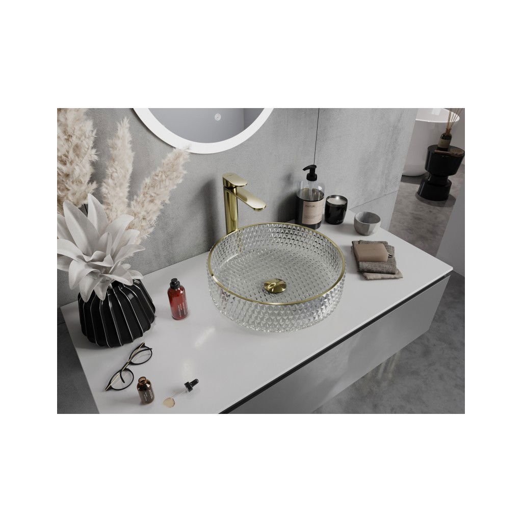 Mexen Aura, üveg asztali mosogató, 39 x 39 cm, tiszta-arany, 24013905