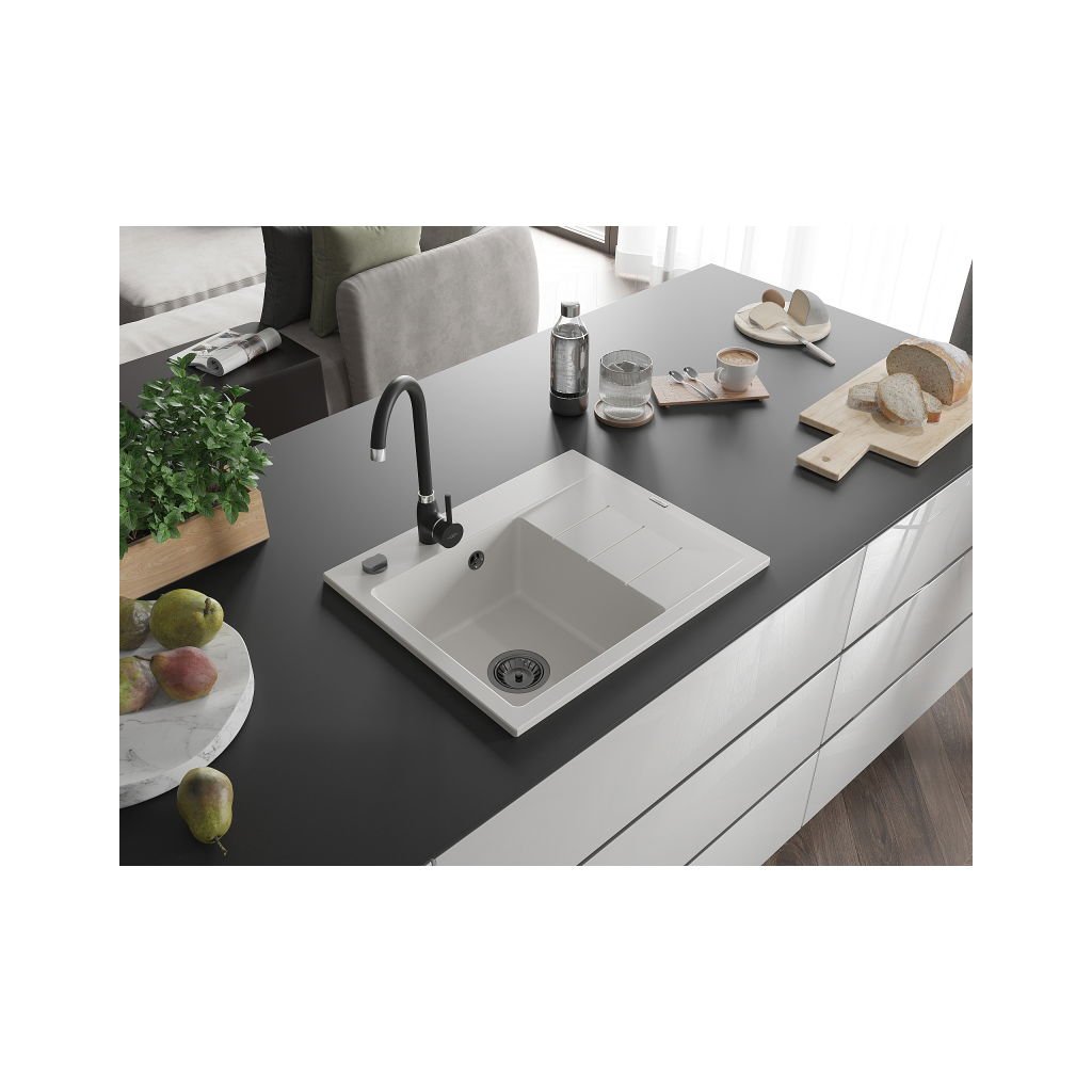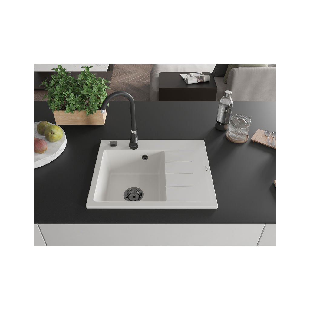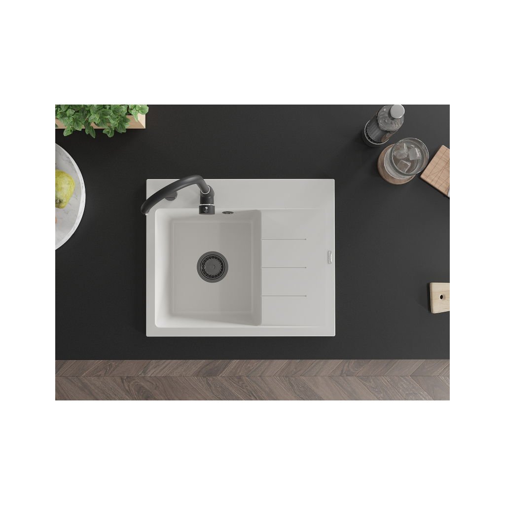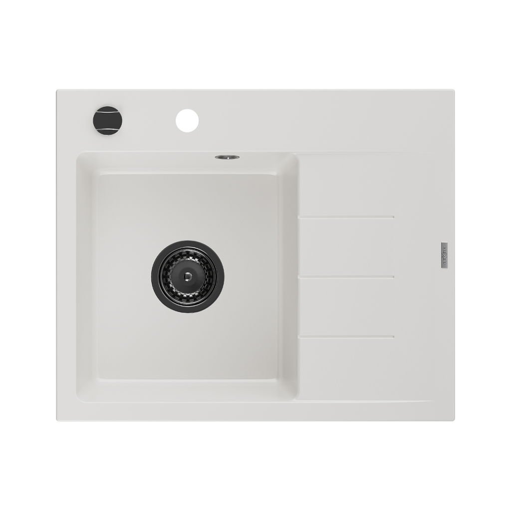 Mexen Ben, 1 kamrás gránit mosogató 600x500x190 mm, bal + fekete szifon, fehér, 6522605000-20-B