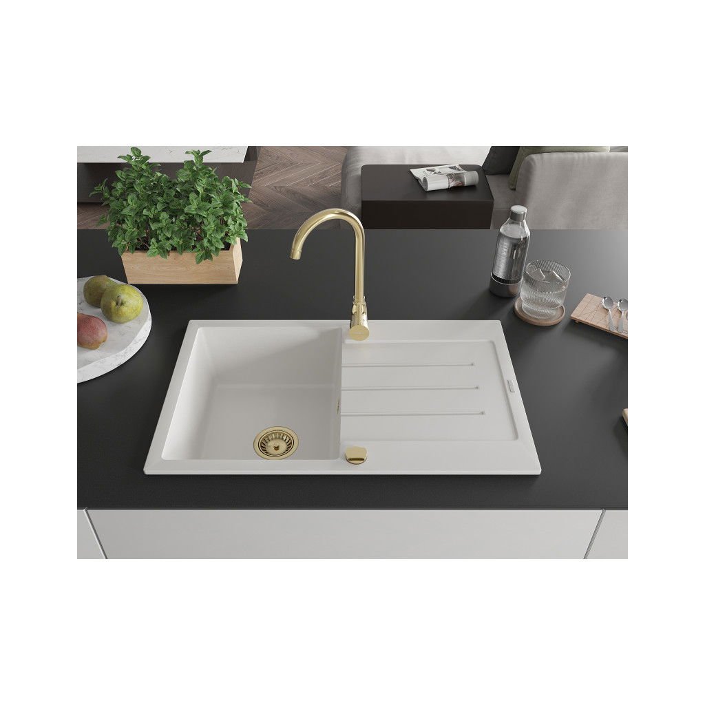 Mexen Bruno, 1 kamrás gránit mosogató csepptálcával 80x50 cm, konyhai csaptelep Telma, fehér, 6513-20-670200-50
