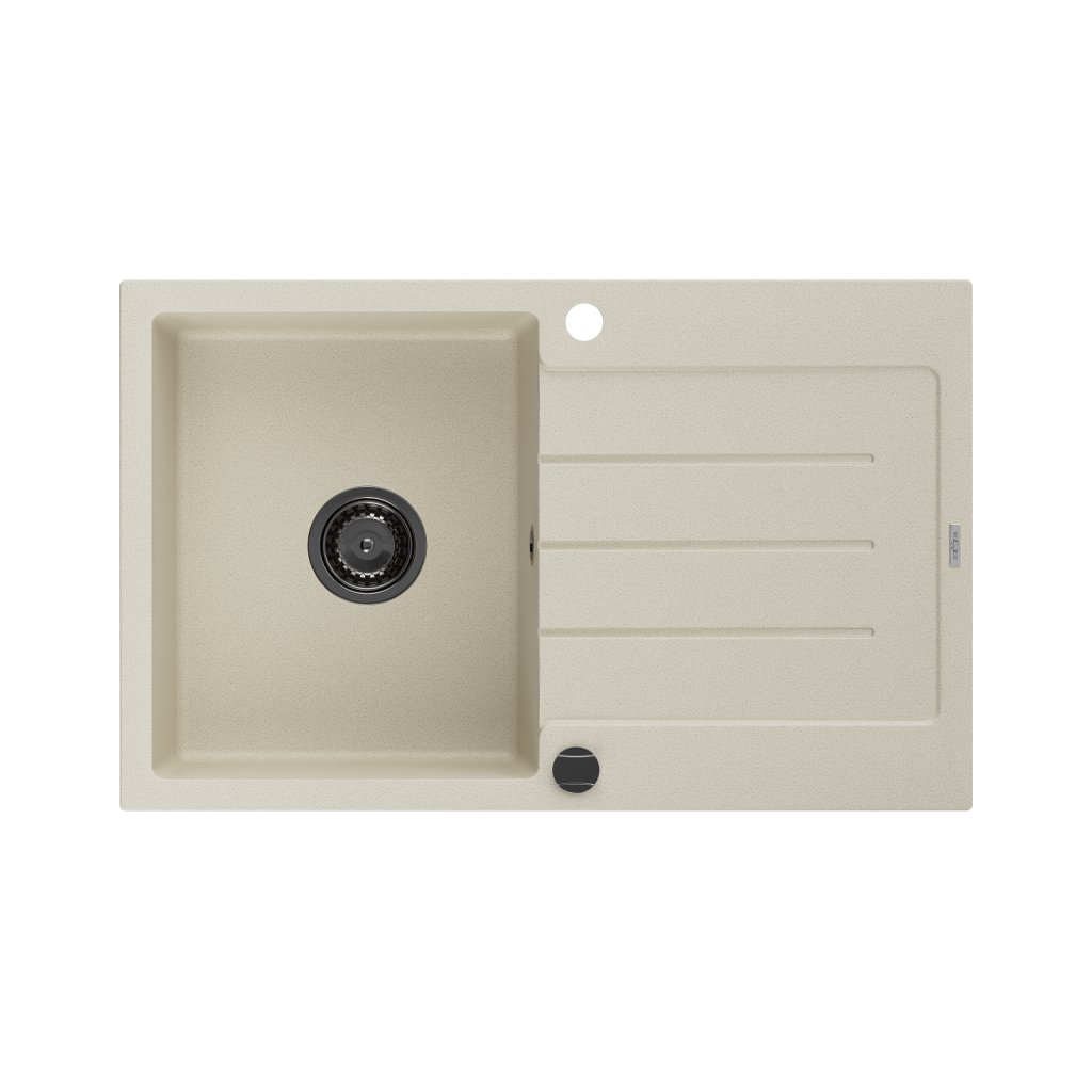 Mexen Bruno, gránit mosogató 795x495x200 mm, 1 kamrás, bézs, fekete szifonnal, 6513791010-69-B