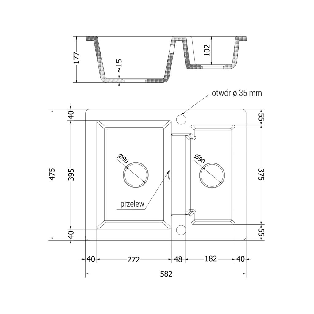 - Lefolyónyílás: 3,5”; fi = 90 mm