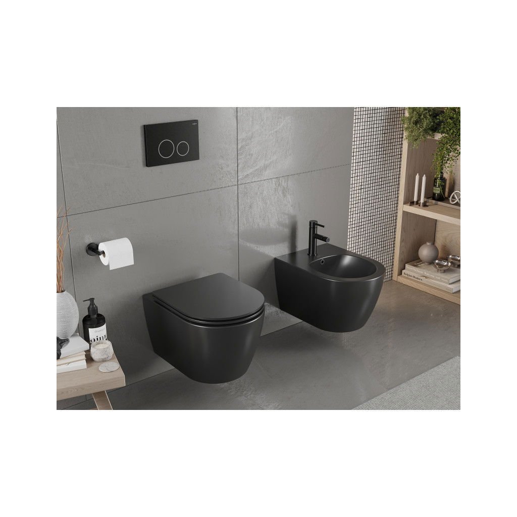 WC-csésze Mexen Carmen Rimless vékony WC-ülőkével Vékony, hőre keményedő, matt fekete - 30881085