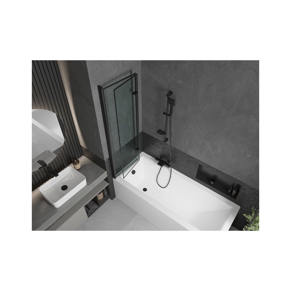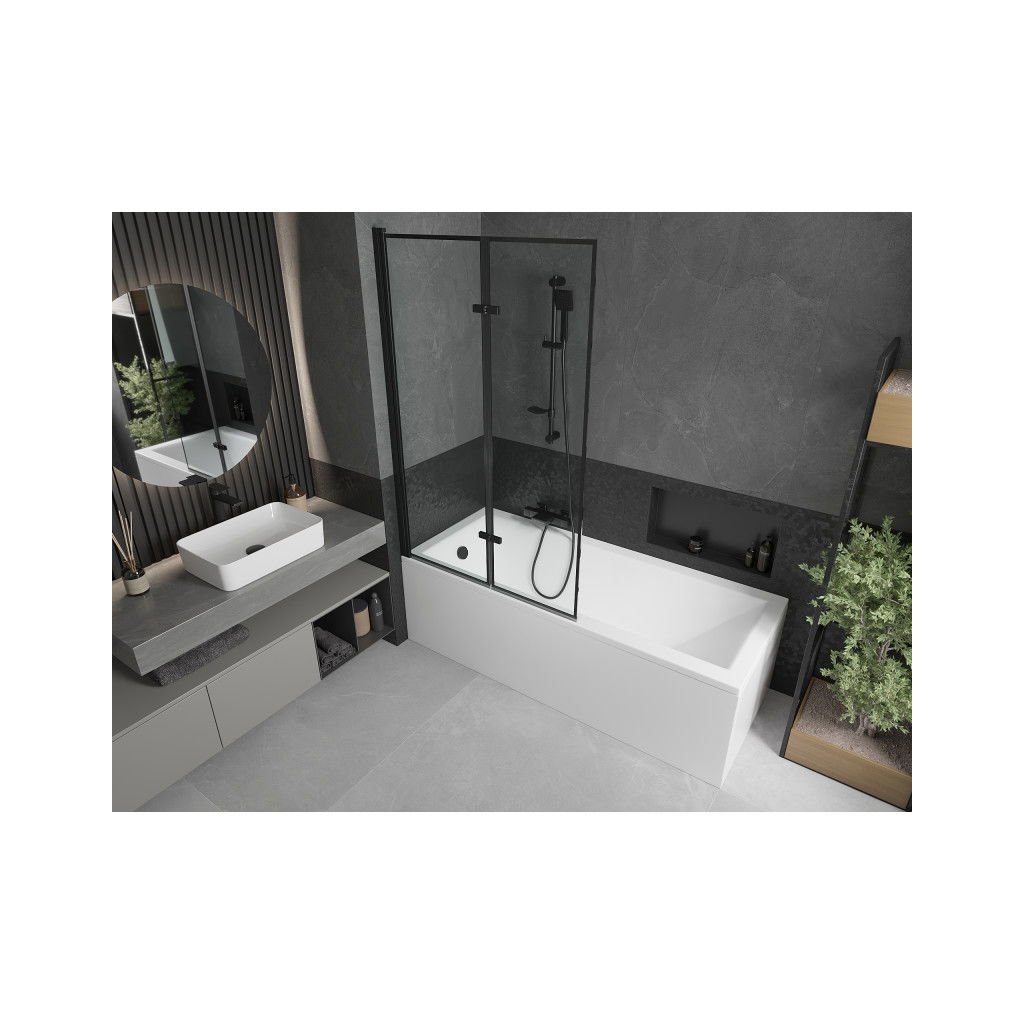 Mexen Castor, 2 szárnyas kádparaván 100 x 150 cm, 6 mm átlátszó üveg-fekete mintás, fekete profil, 892-100-002-70-70