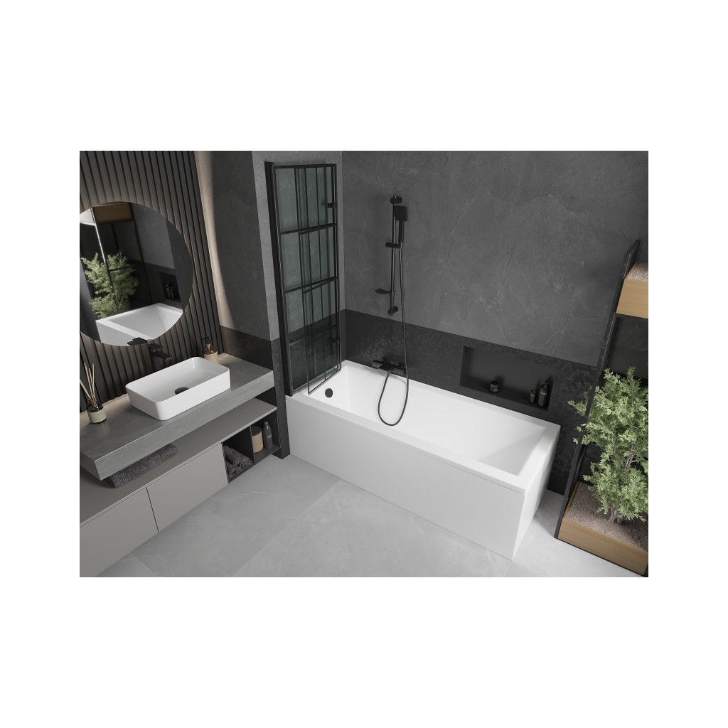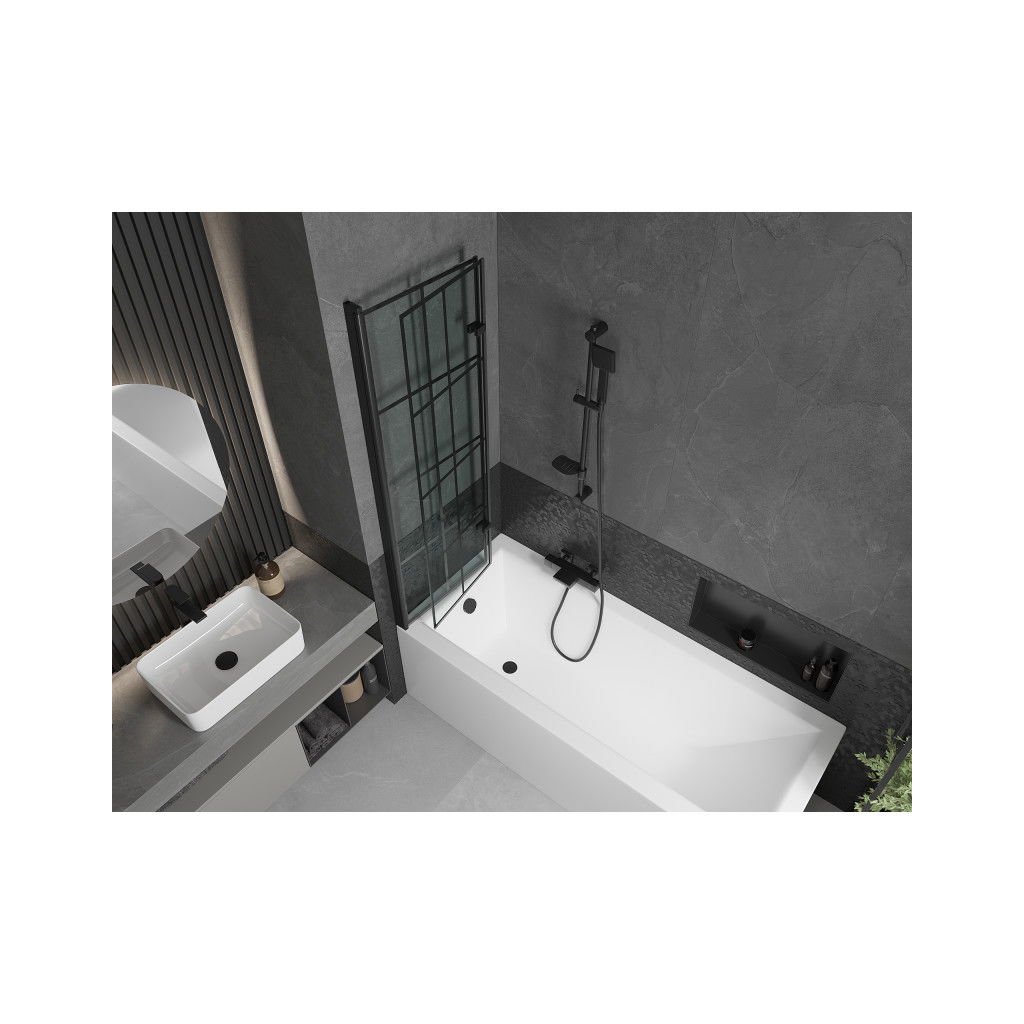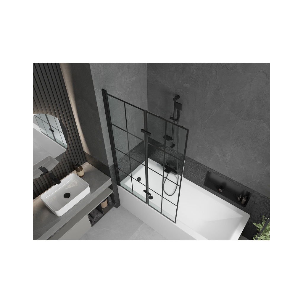 Mexen Castor, 2 szárnyas kádparaván 100 x 150 cm, 6 mm átlátszó üveg-fekete mintás, fekete profil, 892-100-002-70-77