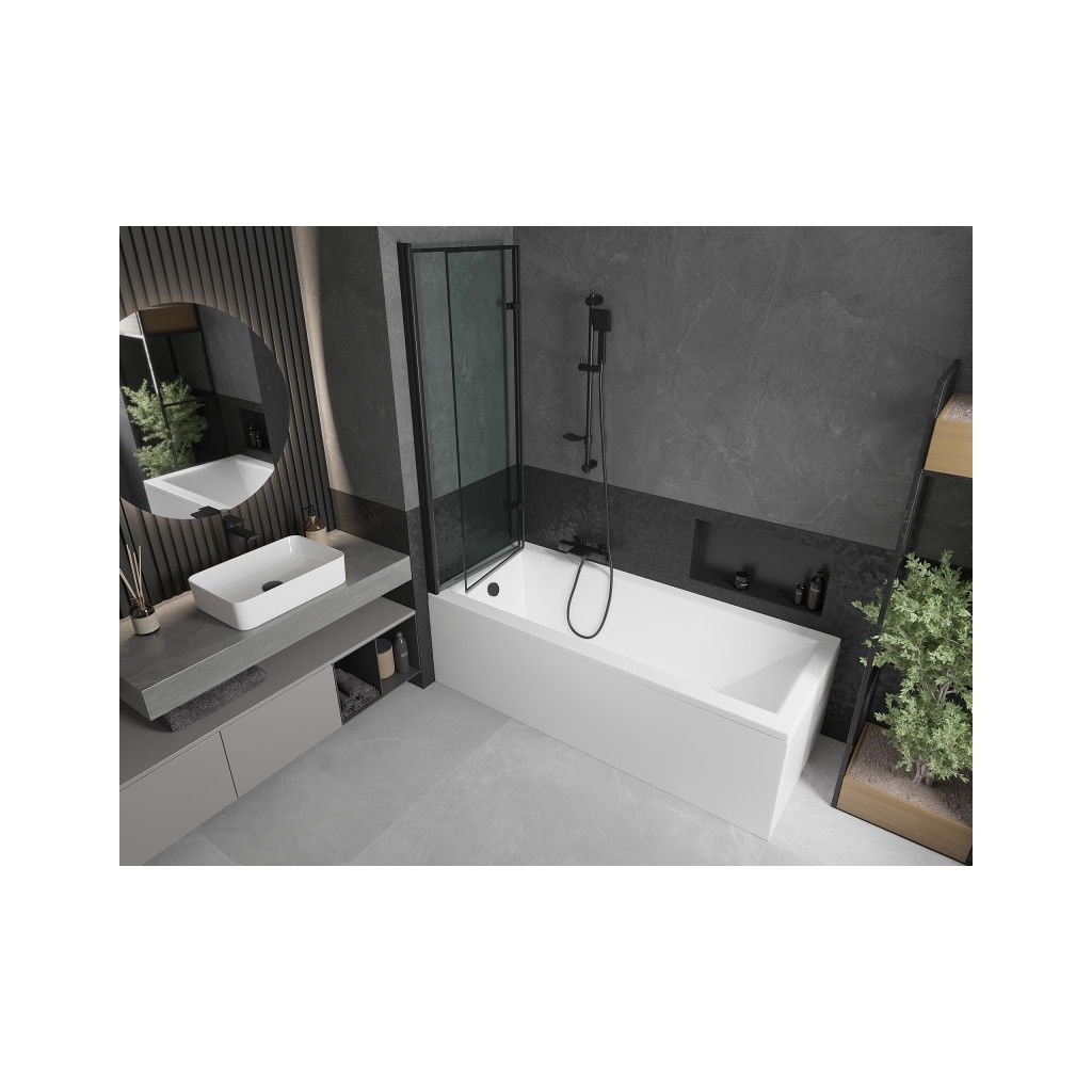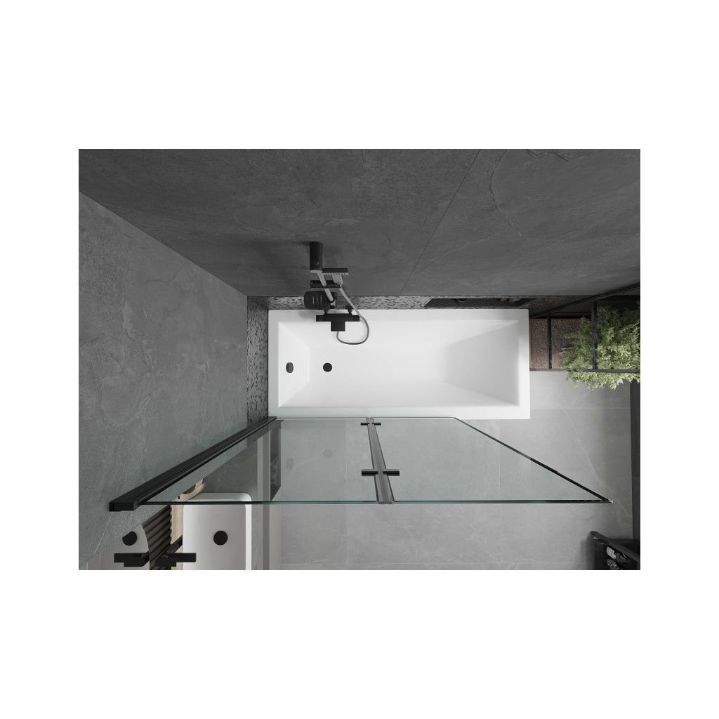 Mexen Castor, 2 szárnyas kádparaván 120 x 150 cm, 6 mm átlátszó üveg-fekete mintás, fekete profil, 892-120-002-70-70