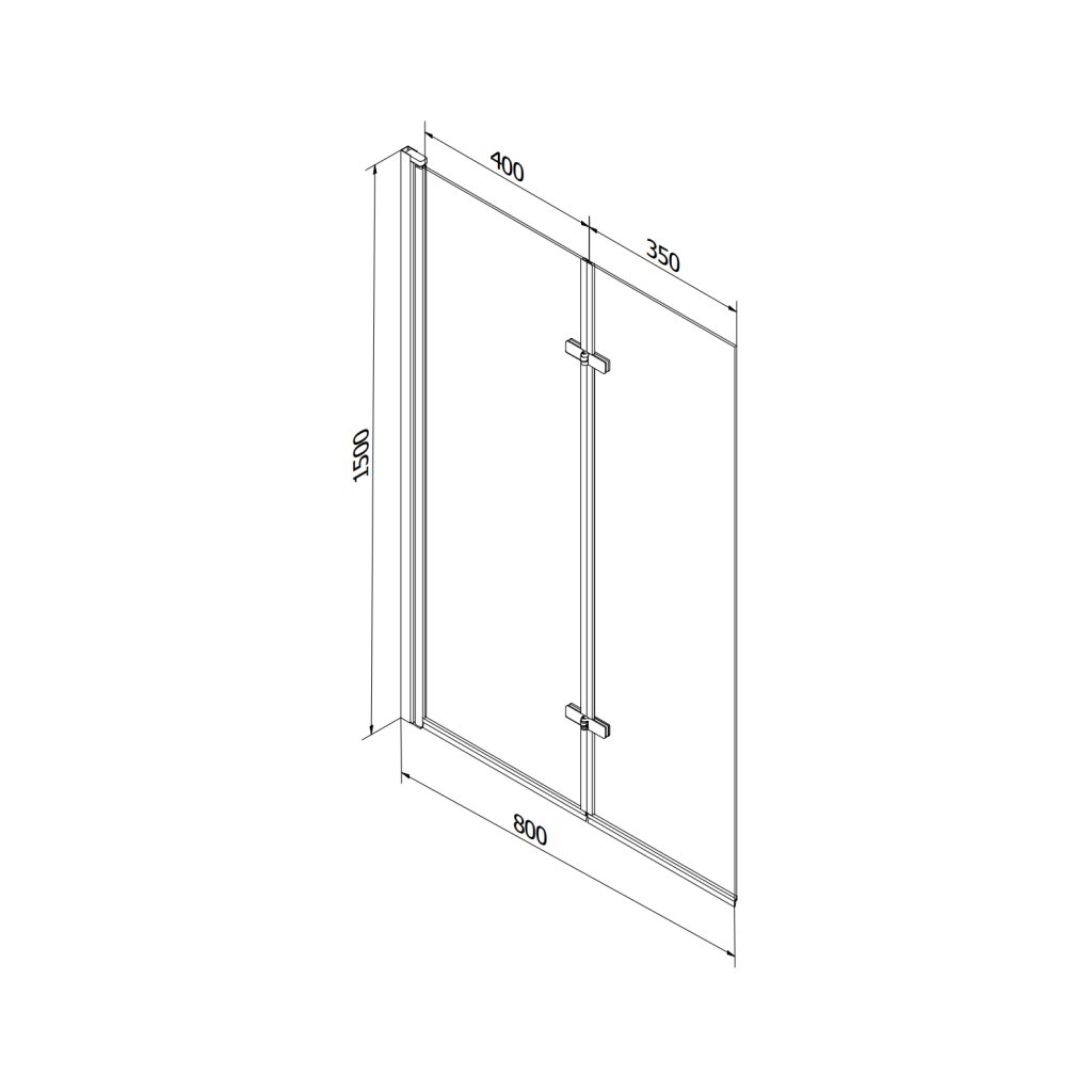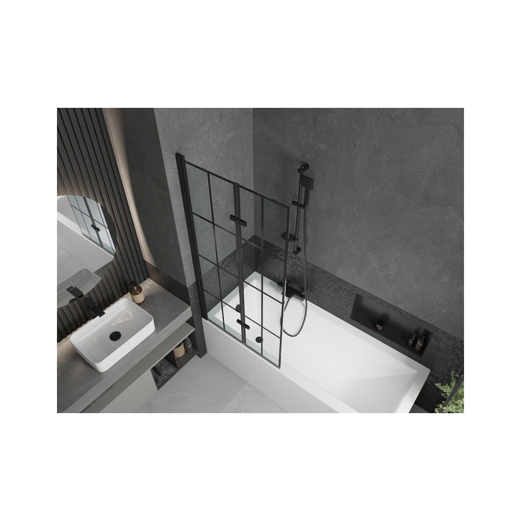 Mexen Castor, 2 szárnyas kádparaván 80 x 150 cm, 6 mm átlátszó üveg-fekete mintás, fekete profil, 892-080-002-70-77