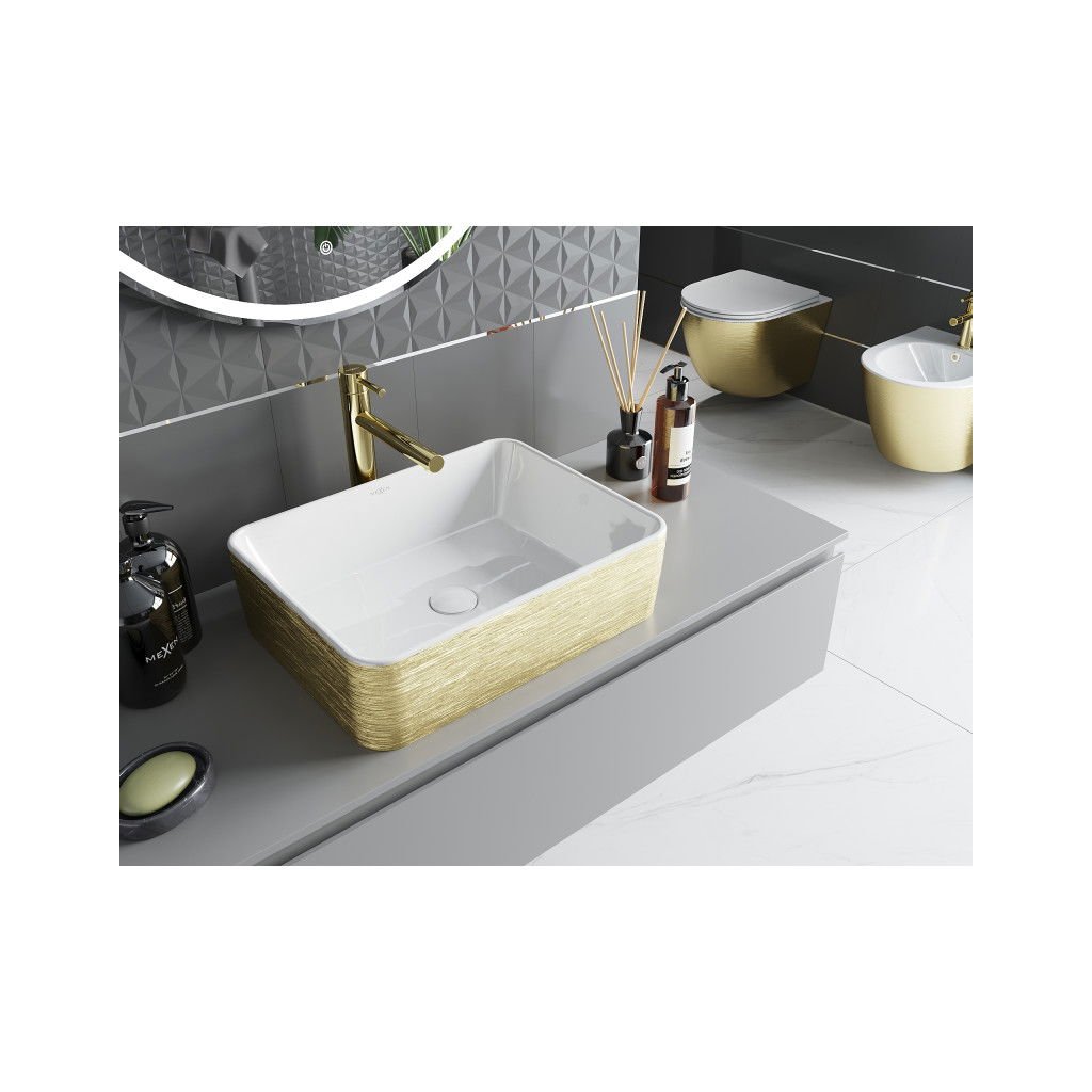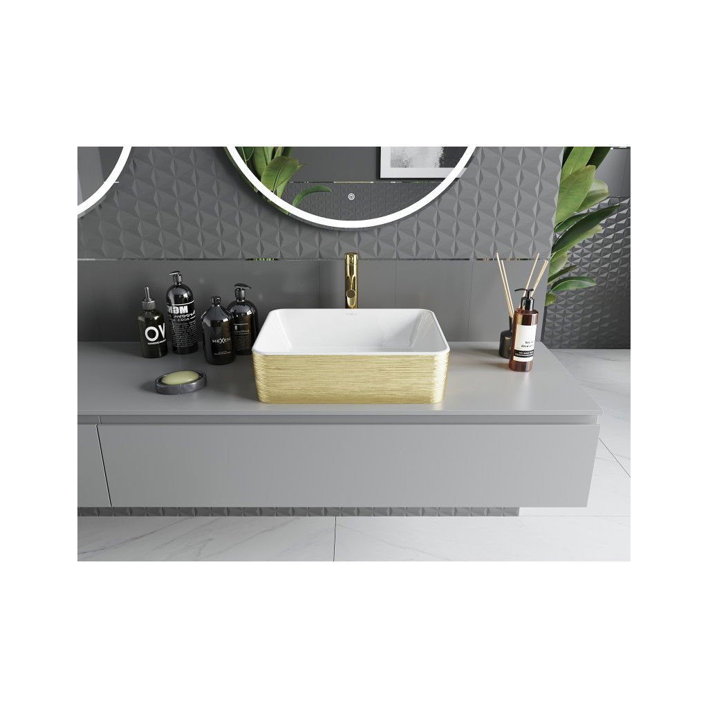 Mexen Catia, asztali mosogató 48x37x14 cm, fehér fényes-arany mintás, 21314817