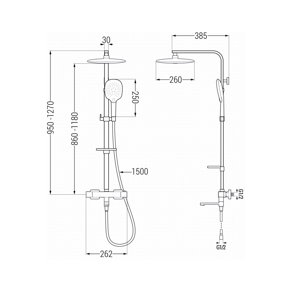 - Csatlakozások: 1/2 "(alsó - kézi zuhany) + 3/4" (felső a zuhanyoszlophoz)