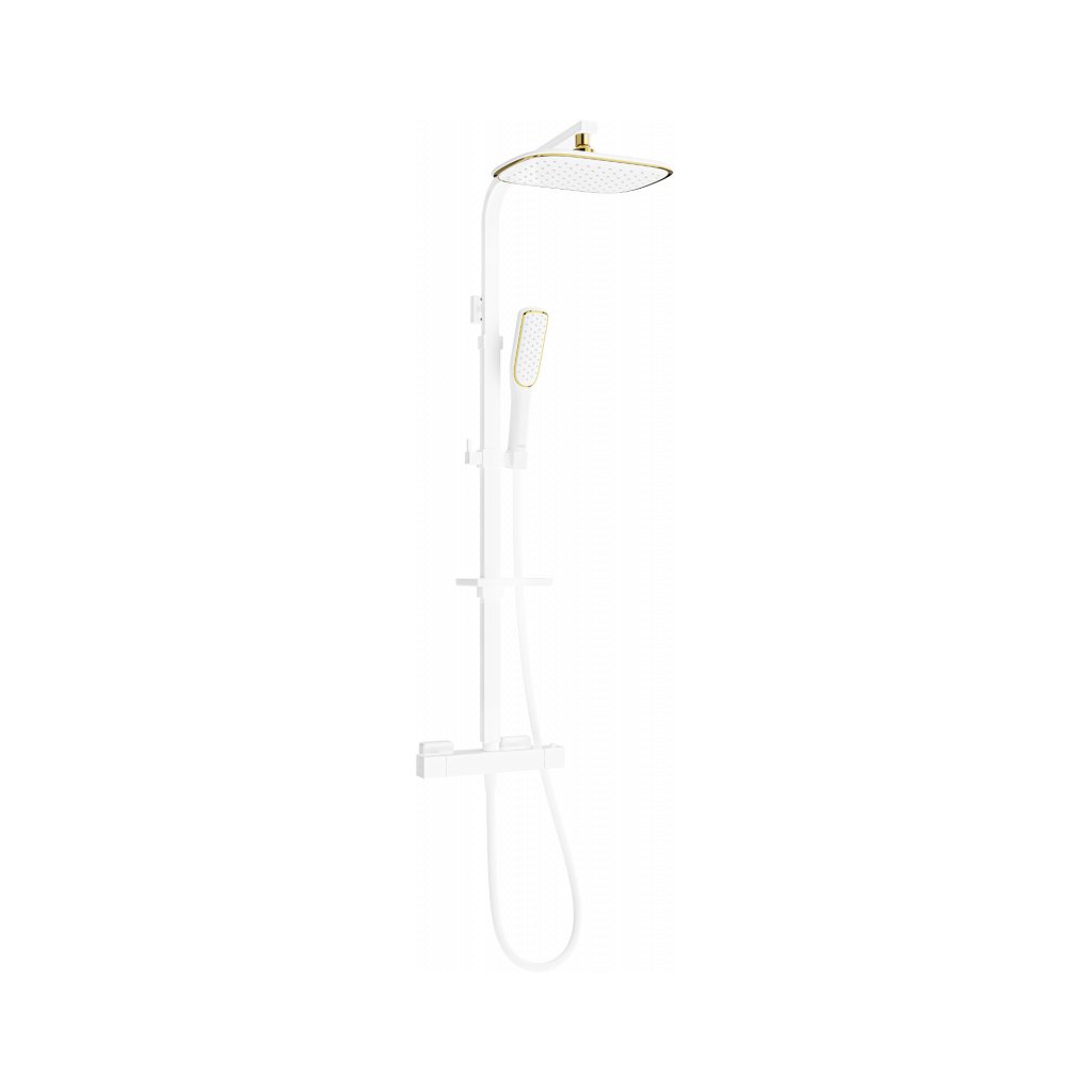 MEXEN - CQ49 zuhanygarnitúra termosztatikus csapteleppel Cube, fehér-arany, 772504995-25