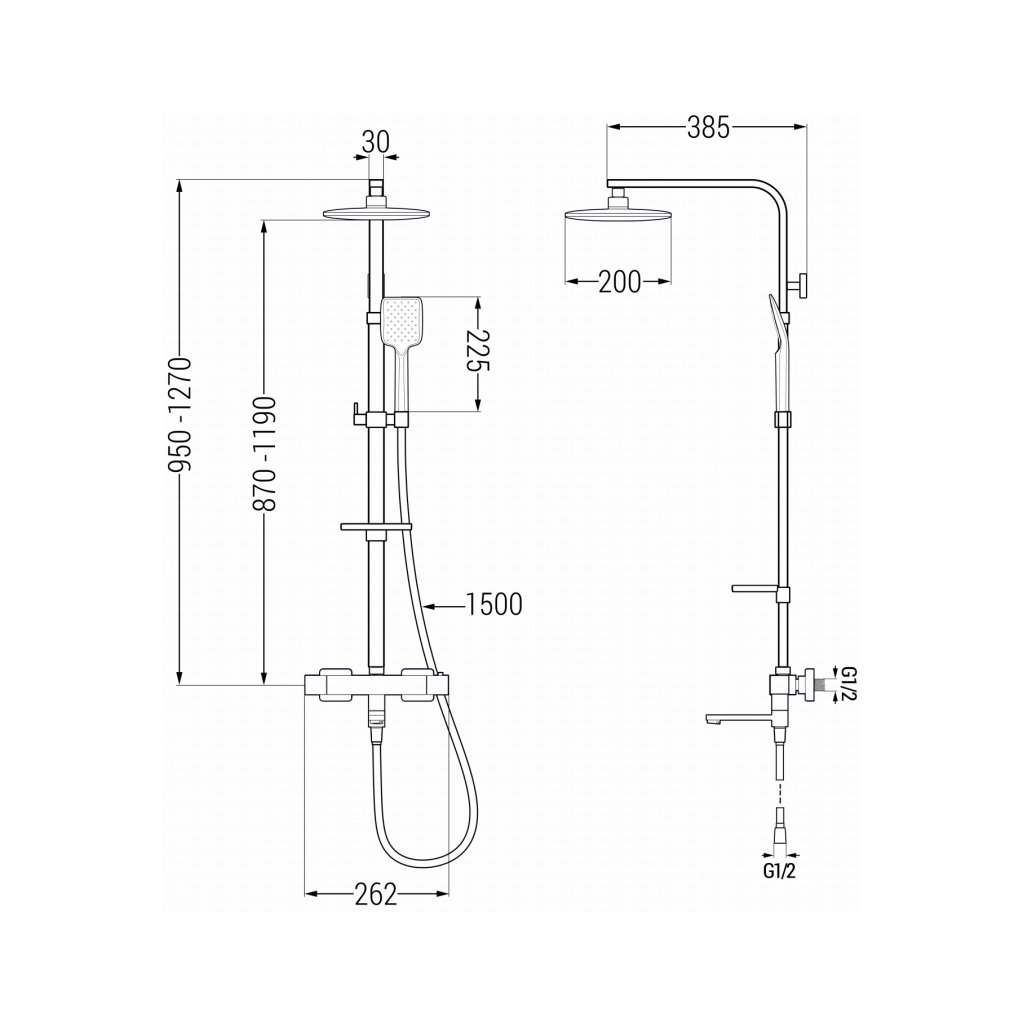 - Csatlakozások: 1/2 "(alsó - kézi zuhany) + 3/4" (felső a zuhanyoszlophoz)