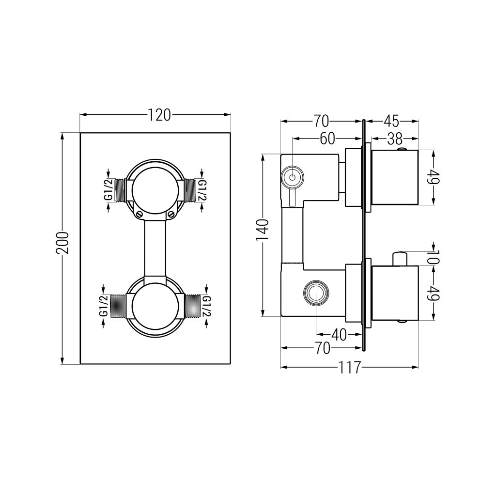 Csatlakozás: 2x 1/2 "bemenet és 2x 1/2" kimenet