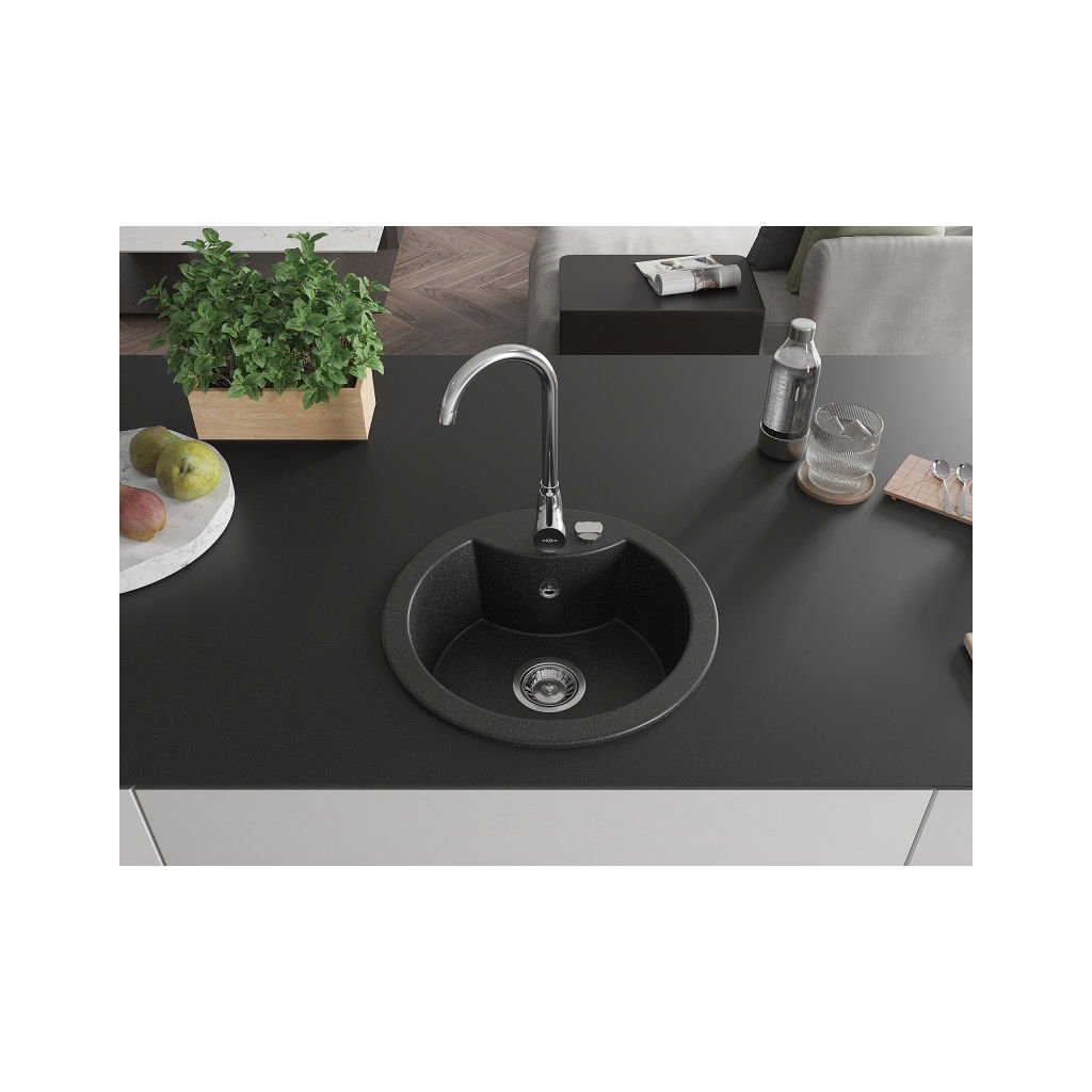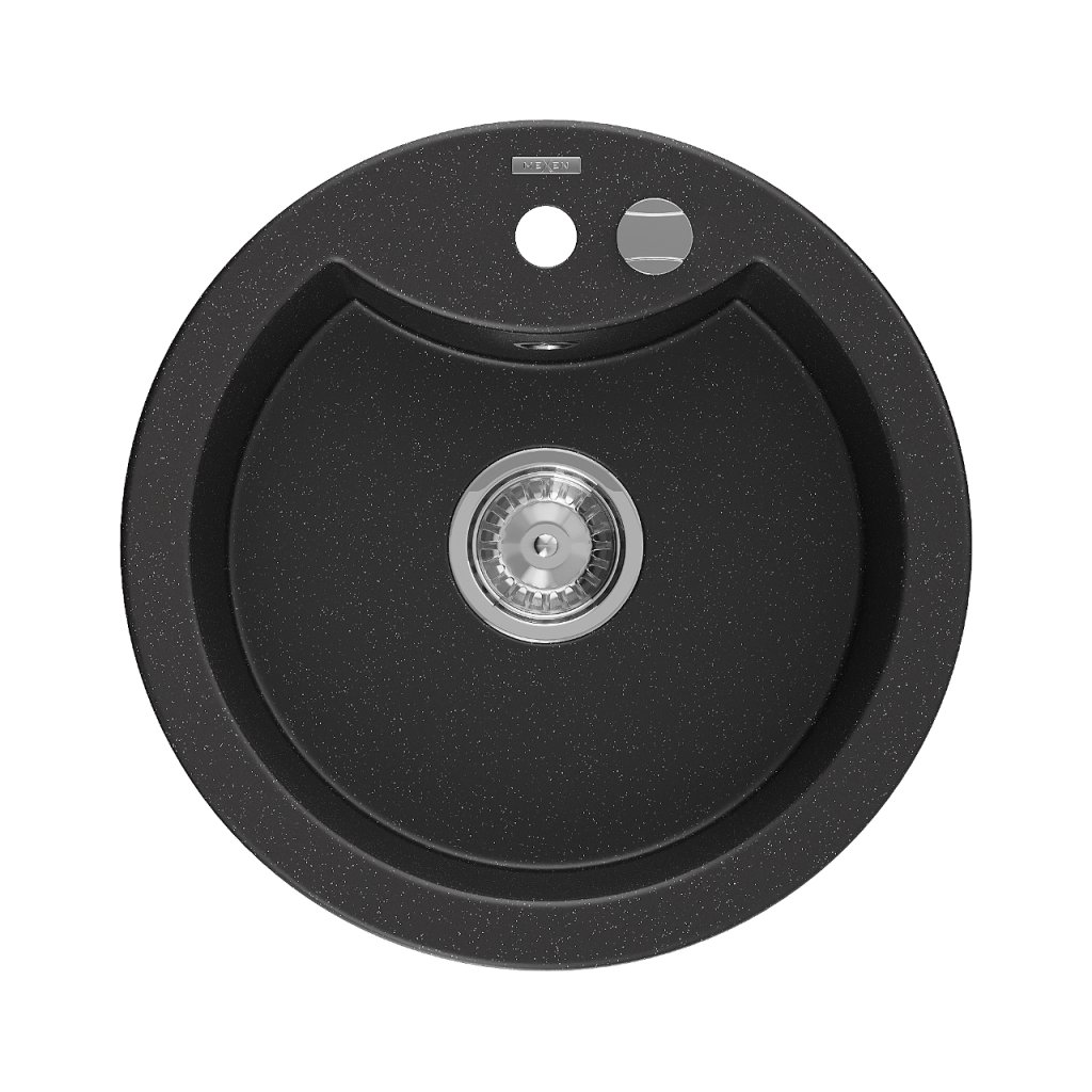 Mexen Diego - gránit mosogató 48,8x48,8 cm, 1 kamrás, fekete-ezüst, 6512481000-73