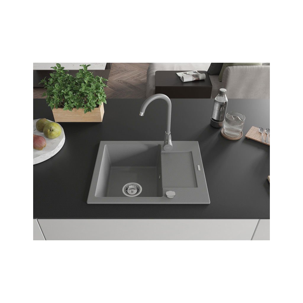 Mexen Enzo, 1 kamrás gránit mosogató csepptálcával 58x47 cm, konyhai csaptelep Telma, szürke, 6506-71-670200-71