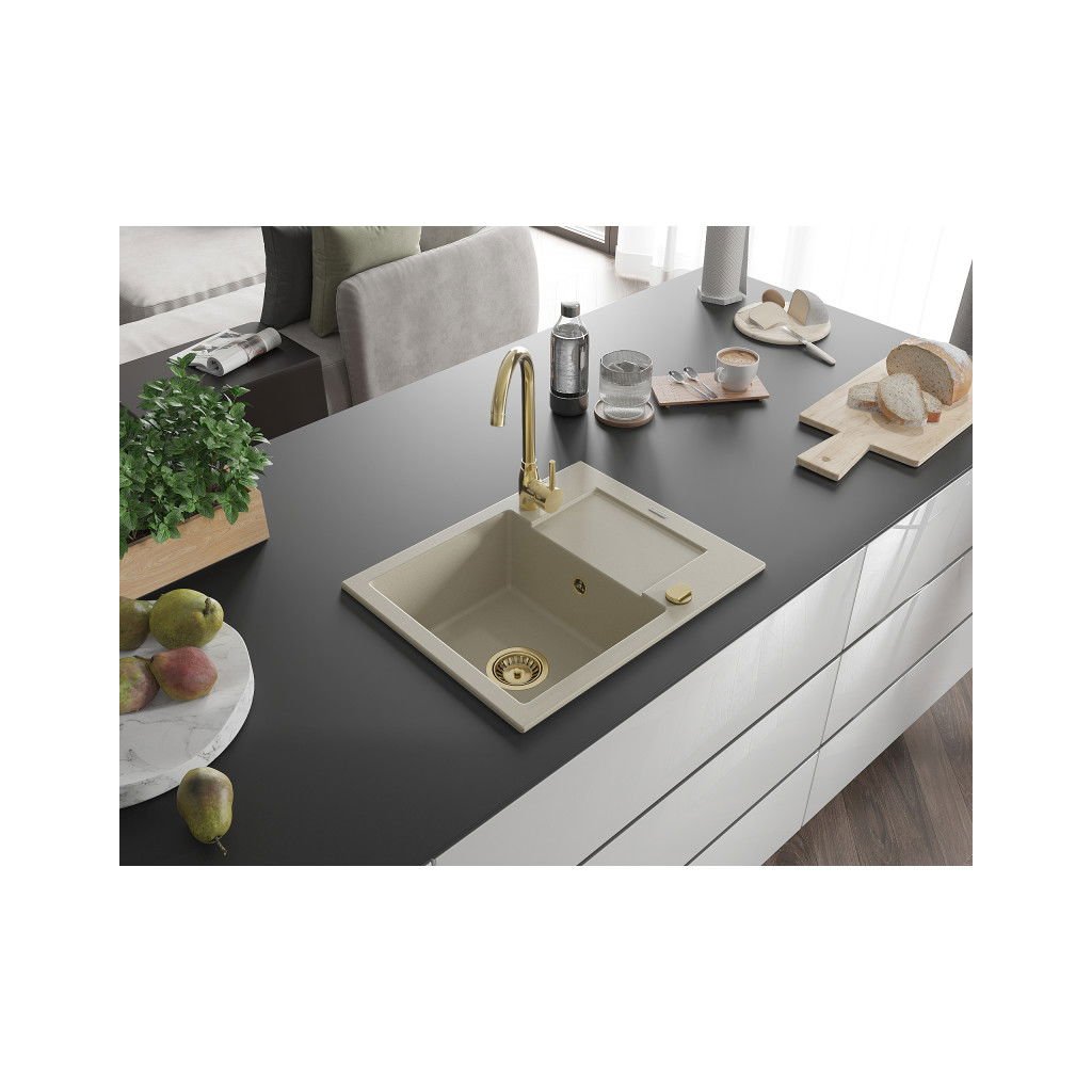 Mexen Enzo, gránit mosogató 576x465x174 mm, 1 kamrás, bézs, arany szifonnal, 6506571005-69-G