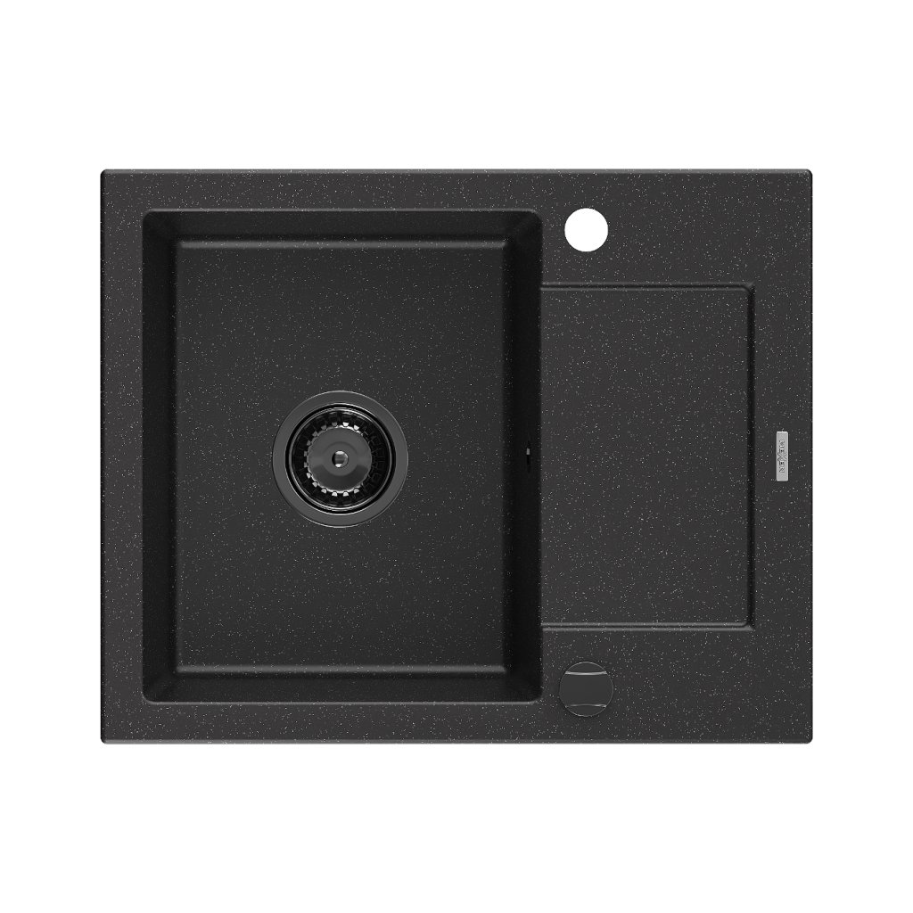 Mexen Enzo, gránit mosogató 576x465x174 mm, 1 kamrás, fekete/ezüst metál grafit szifonnal, 6506571005-73-B