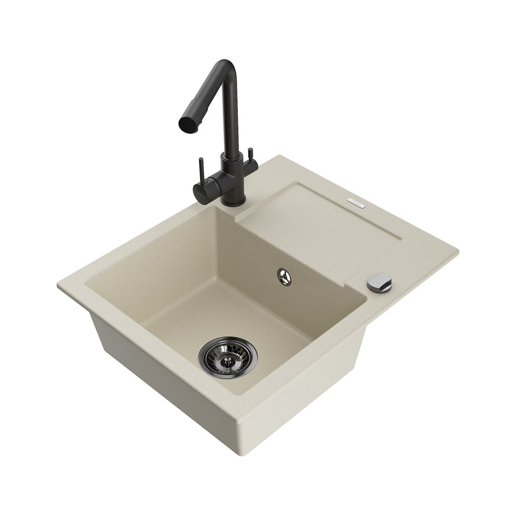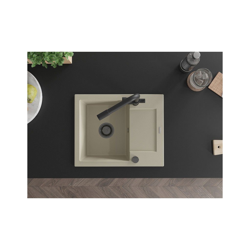 Mexen Enzo, gránit mosogató 576x465x174 mm, 1 kamrás, fekete matt csaptelep Duero, bézs, 6506-69-671600-70