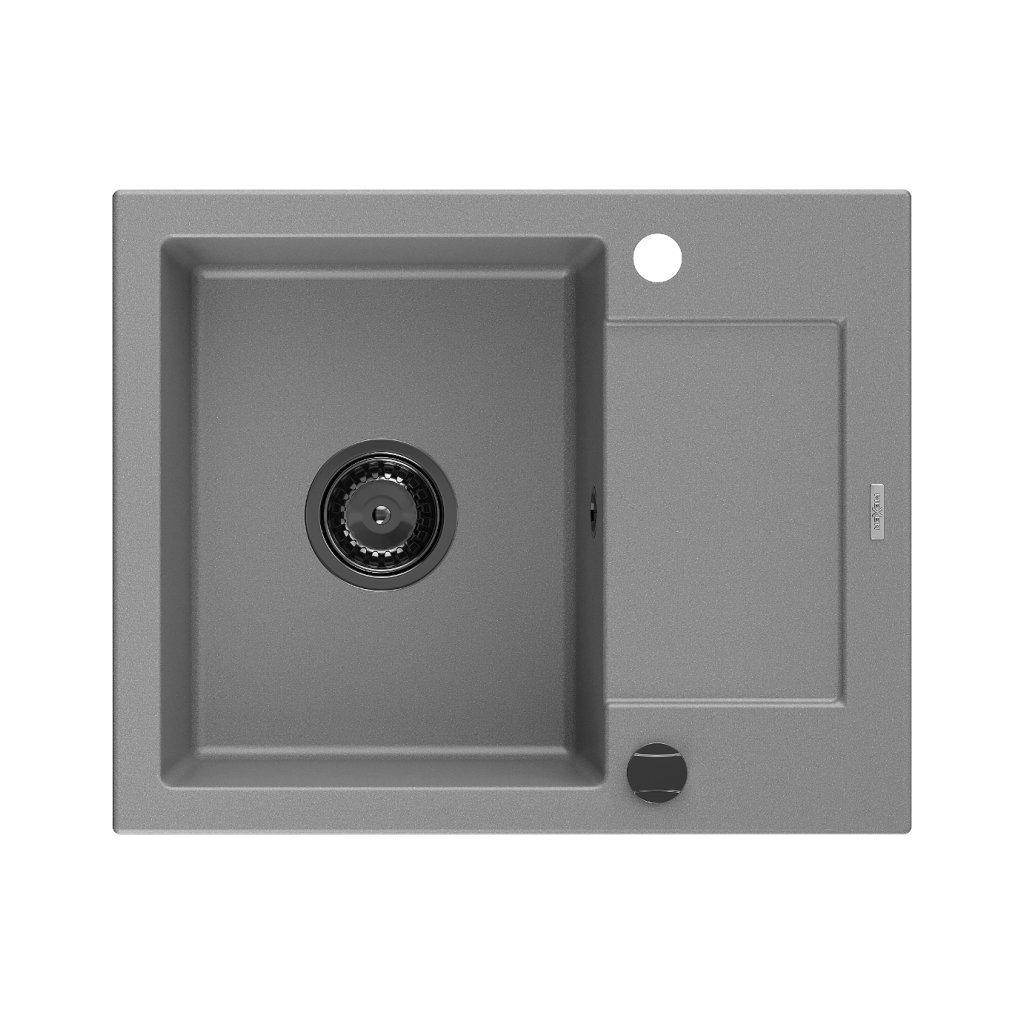 Mexen Enzo, gránit mosogató 576x465x174 mm, 1 kamrás, szürke, fekete szifonnal, 6506571005-71-B