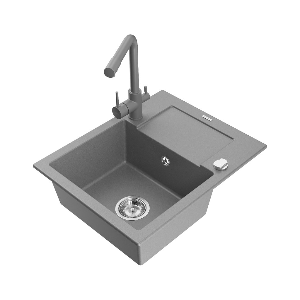 Mexen Enzo, gránit mosogató 576x465x174 mm, 1 kamrás, szürke matt csaptelep Duero, szürke, 6506-71-671600-71