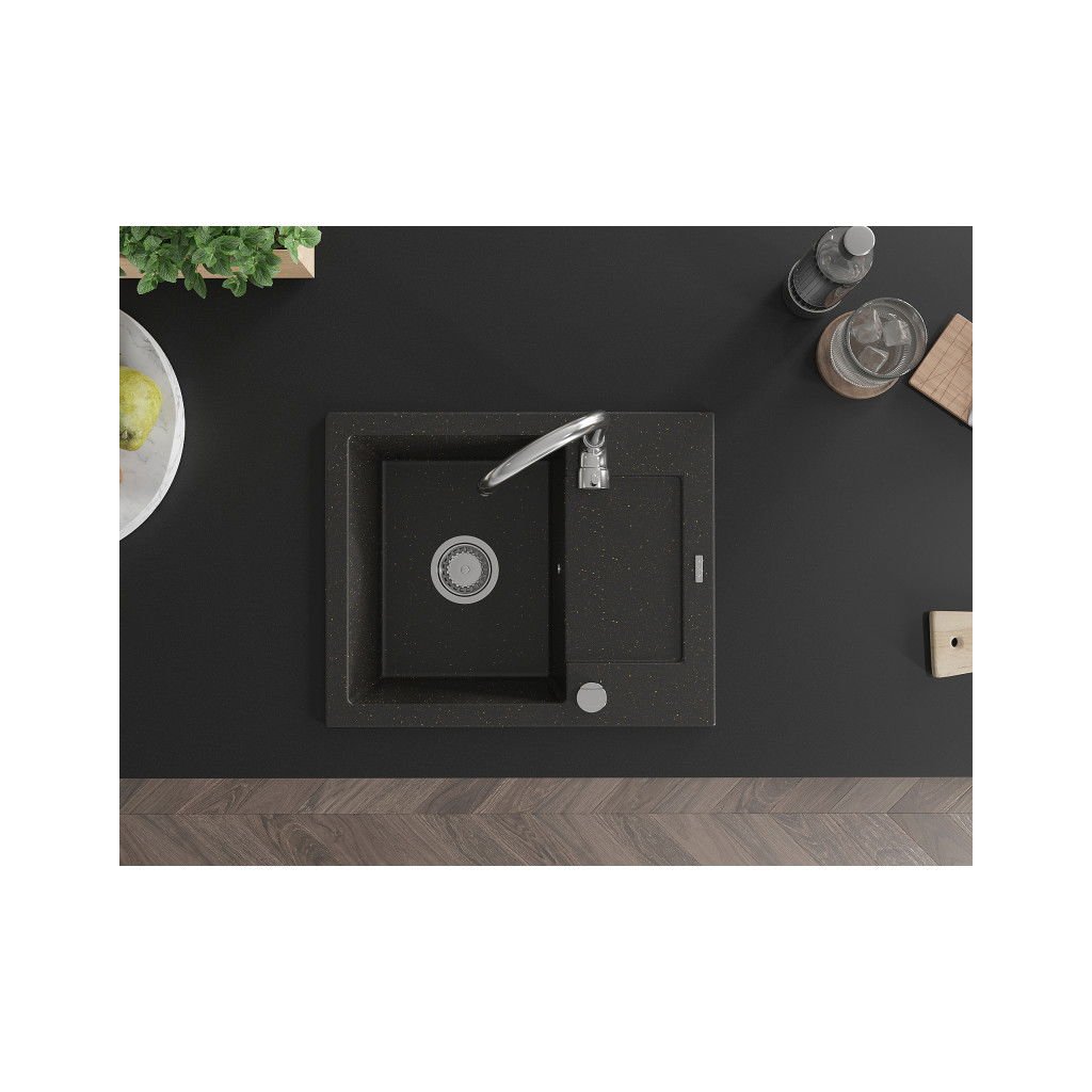 Mexen Enzo, gránit mosogató 576x465x174 mm, 1 kamrás, Telma króm csaptelep, fekete-arany metál, 6506-75-670200-00
