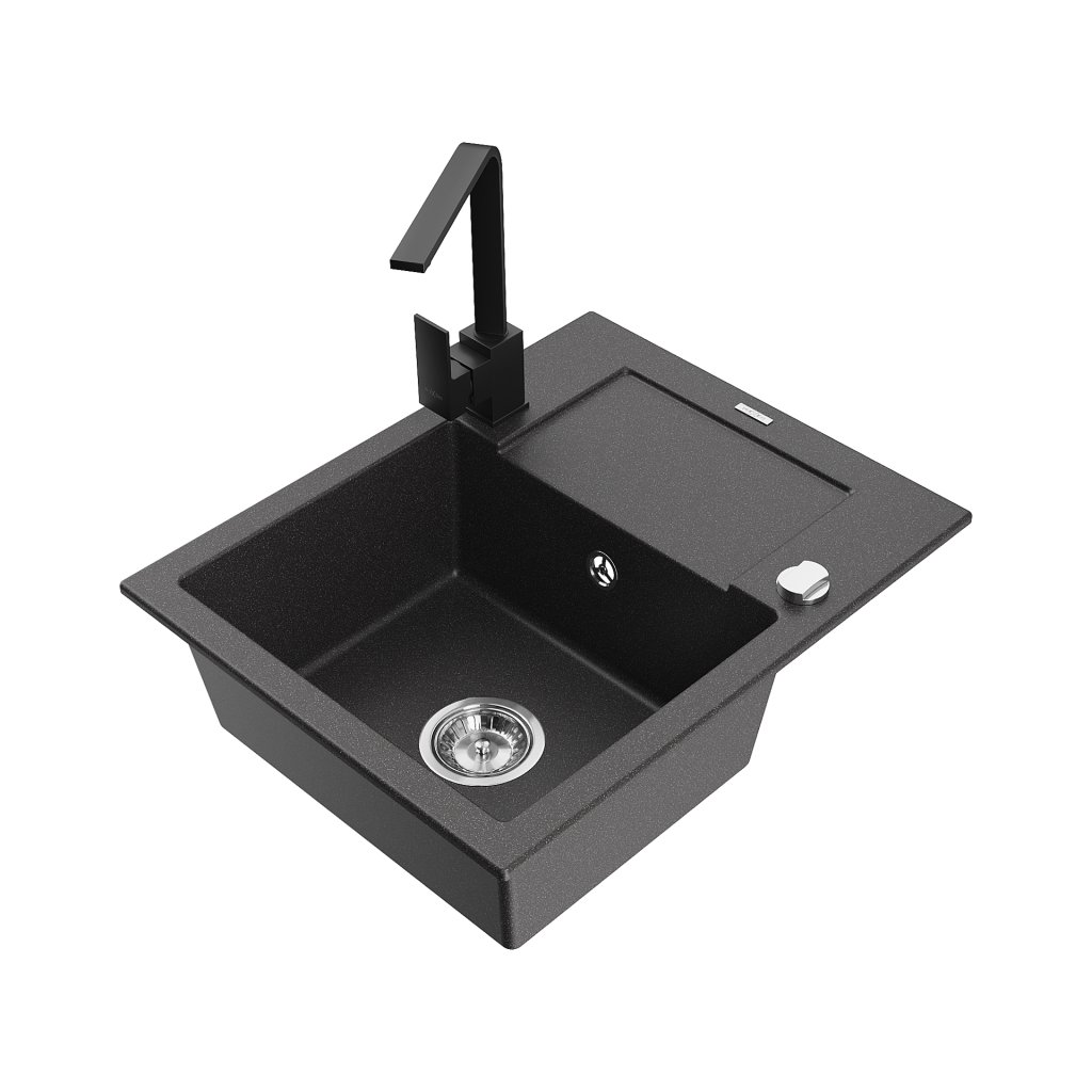 Mexen Enzo, gránit mosogató 576x465x174 mm, 1 kamrás és fekete Rita csaptelep, fekete foltos, 6506-76-670300-70