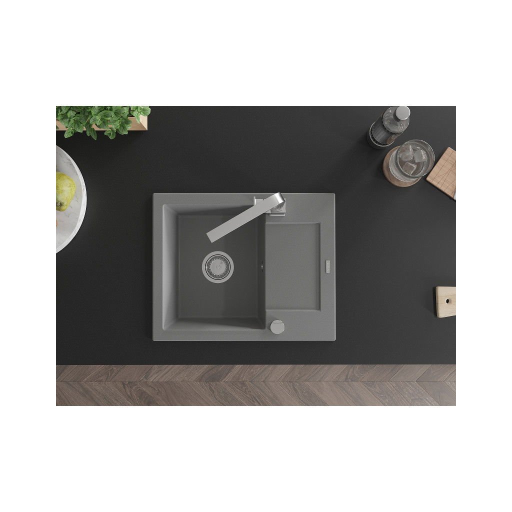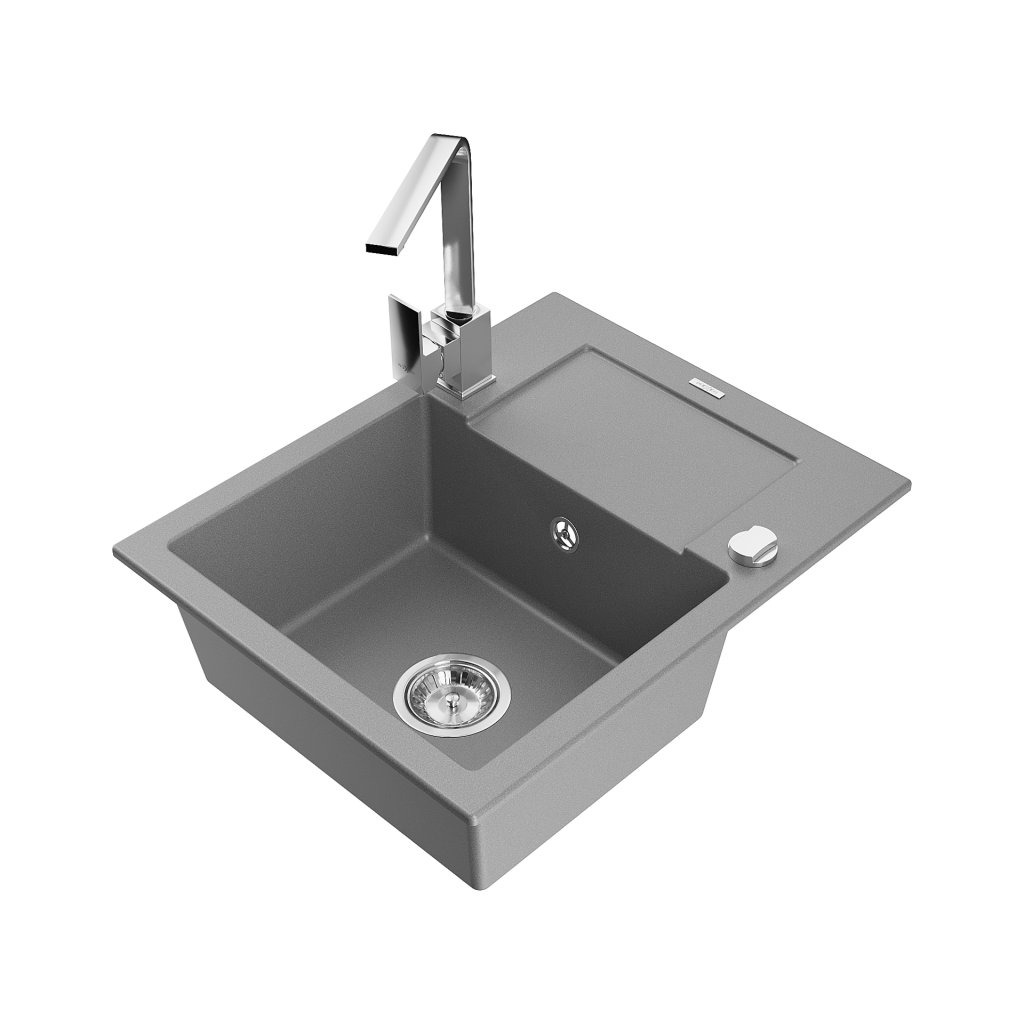 Mexen Enzo, gránit mosogató 576x465x174 mm, 1 kamrás és Rita króm csaptelep, szürke, 6506-71-670300-00
