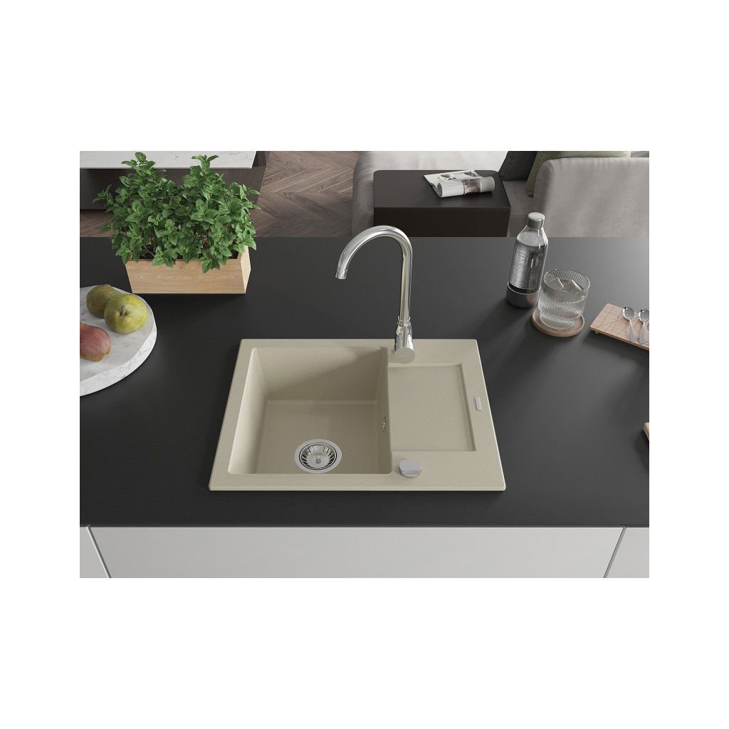 Mexen Enzo - gránit mosogató 57,6x46,5cm, 1 kamrás, bézs, 6506571005-69