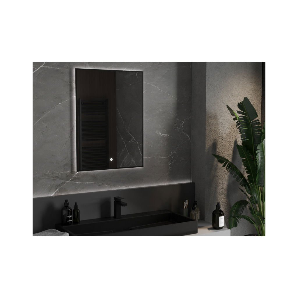 Mexen Erma, LED fürdőszobai tükör háttérvilágítással és fekete kerettel 60x80 cm, 6000K, páramentesítő, 9814-060-080-611-70