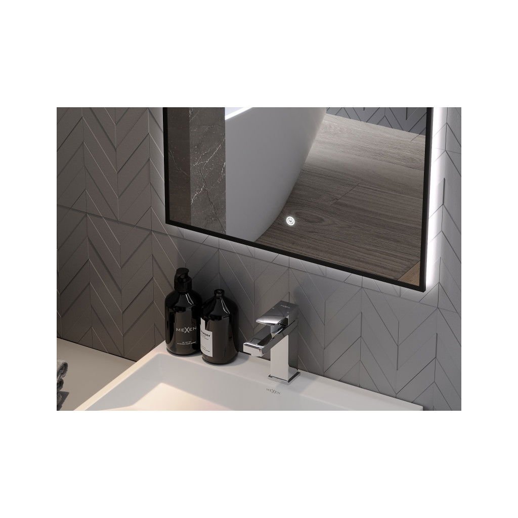 Mexen Erma, LED fürdőszobai tükör háttérvilágítással és fekete kerettel 80x60 cm, 6000K, páramentesítő, 9814-080-060-611-70