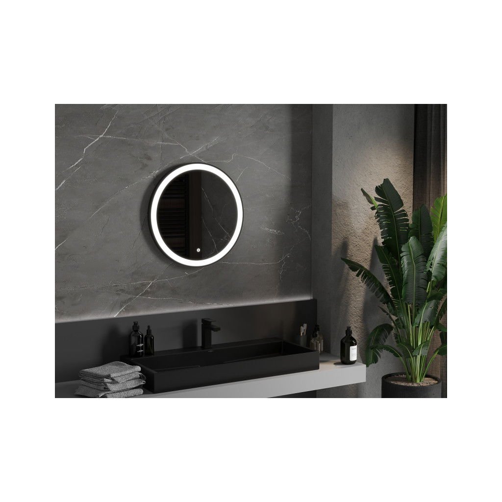 Mexen Esso kerek LED háttérvilágítású fürdőszobai tükör 60cm 6000K páramentes fűtőbetét fekete keret 9825-060-060-611-70