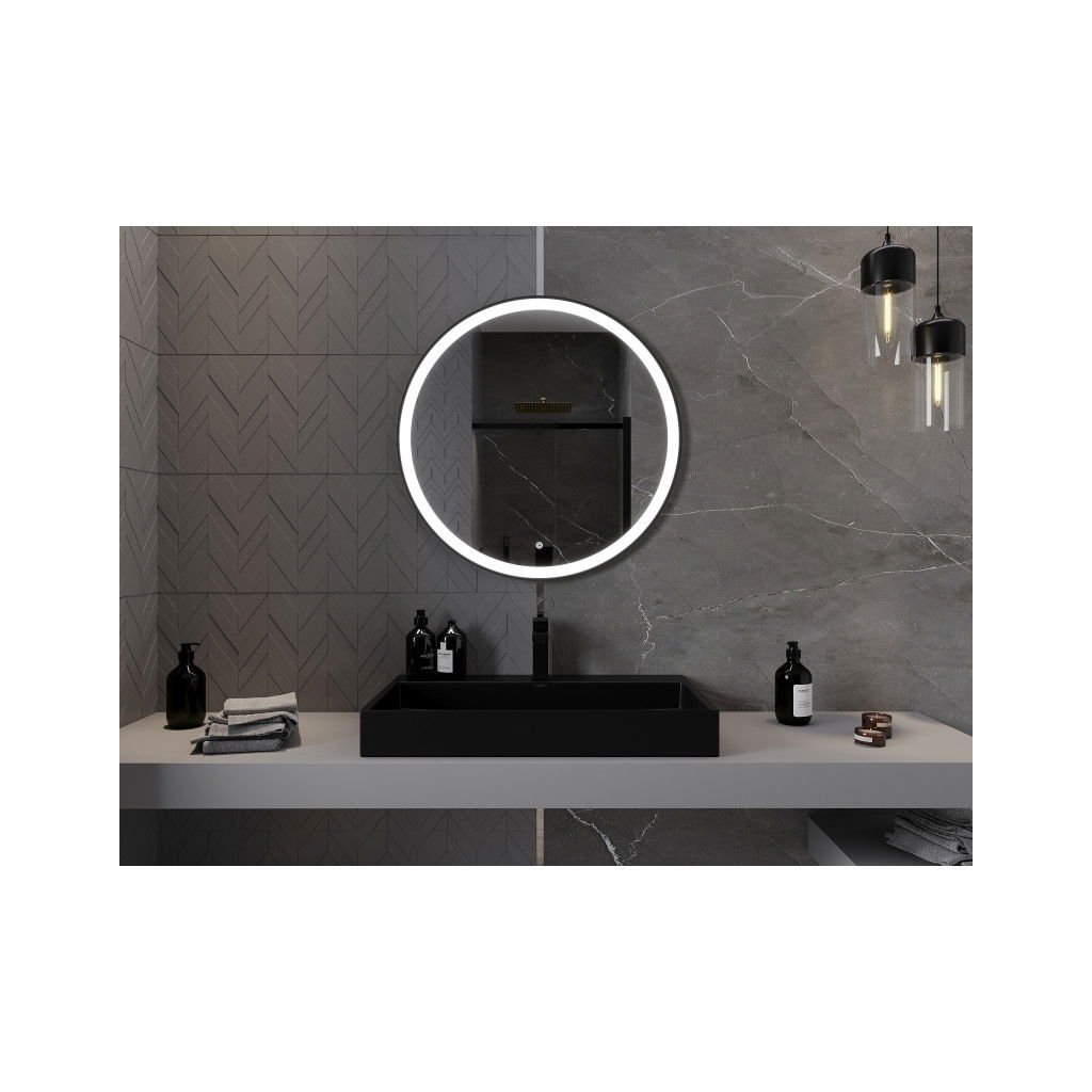 Mexen Esso kerek LED háttérvilágítású fürdőszobai tükör 80cm 6000K páramentes fűtőbetét fekete keret 9825-080-080-611-70