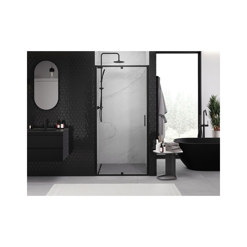 Mexen Exo, 1 szárnyú ajtó nyitáshoz 115x200 cm, 6mm átlátszó üveg, fekete profil, 819-115-000-70-00