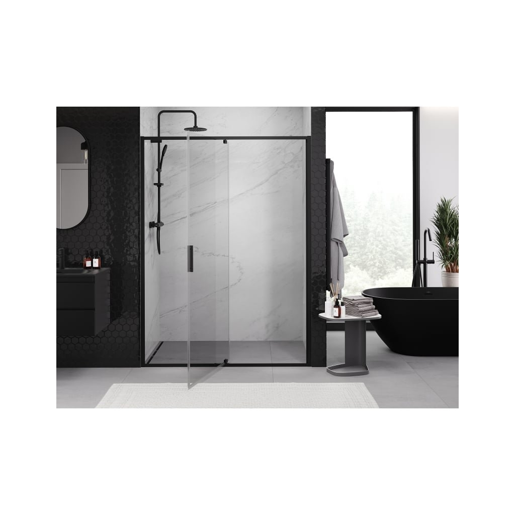 Mexen Exo, 1-szárnyú ajtó nyitáshoz 140x200 cm, 6mm átlátszó üveg, fekete profil, 819-140-000-70-00