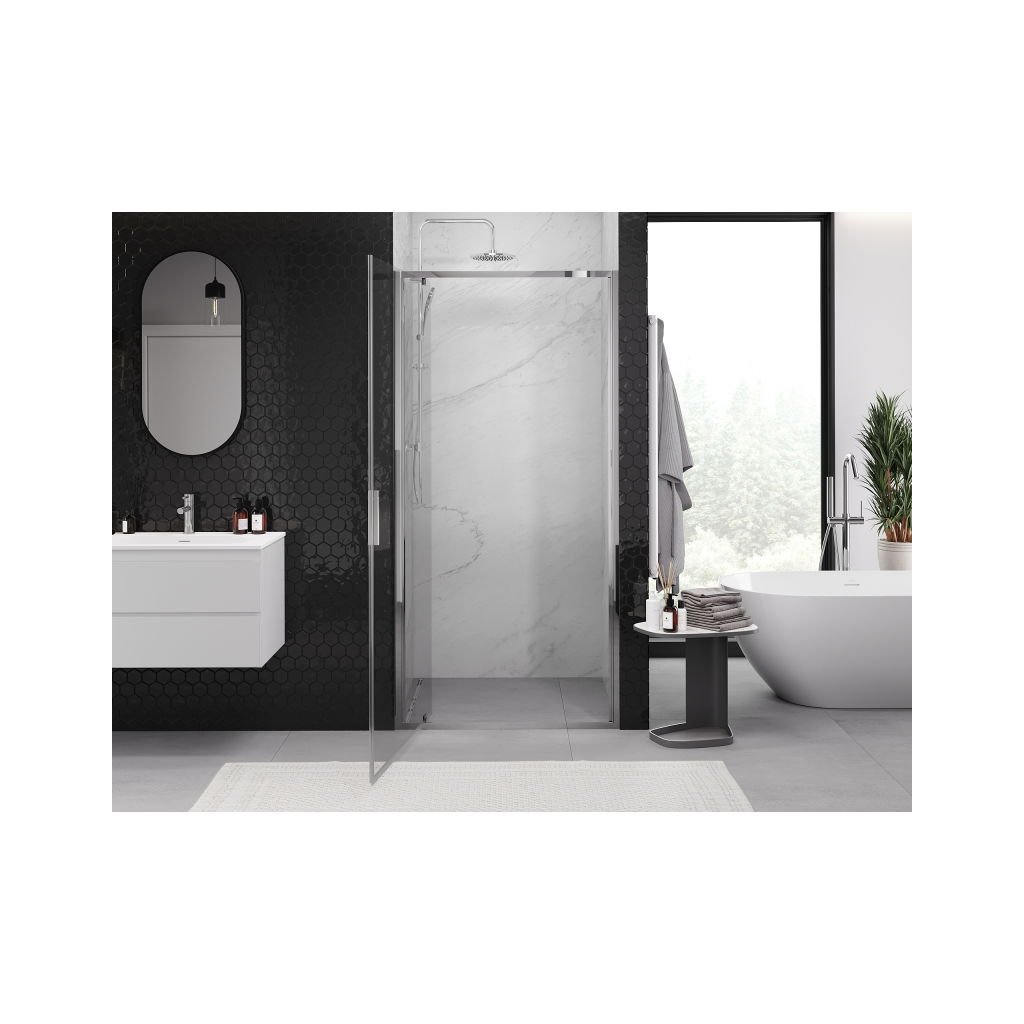 Mexen Exo, 1-szárnyú zuhanyajtó 90 cm-re nyitható, 6 mm-es átlátszó üveg, króm profil, 8181-090-000-01-00
