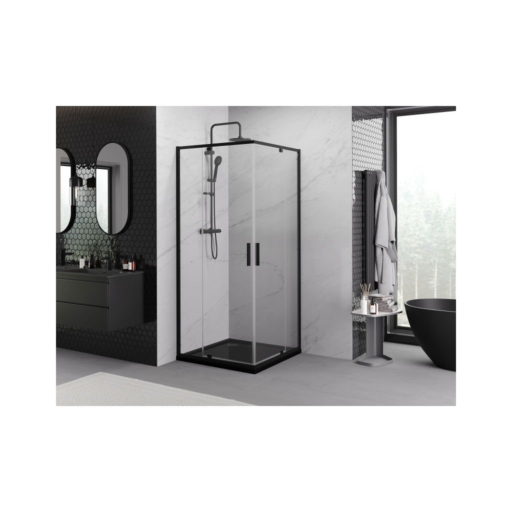 Mexen Exo, 2 szárnyas zuhanykabin 100 x 100 cm, 6 mm átlátszó üveg, fekete profil, 8110-100-100-70-00