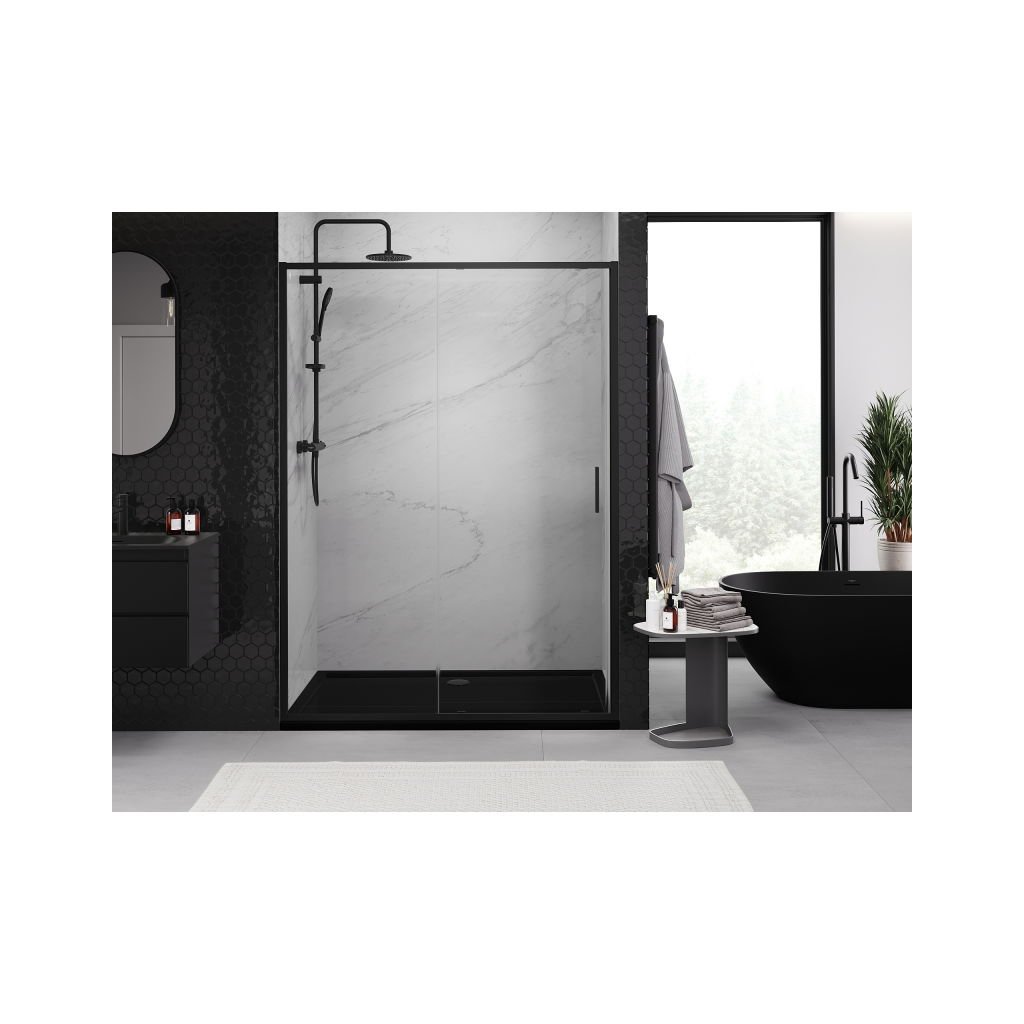 Mexen Exo, nyitható tolóajtó 160x200 cm, 6mm átlátszó üveg, fekete profil, 8151-160-000-70-00