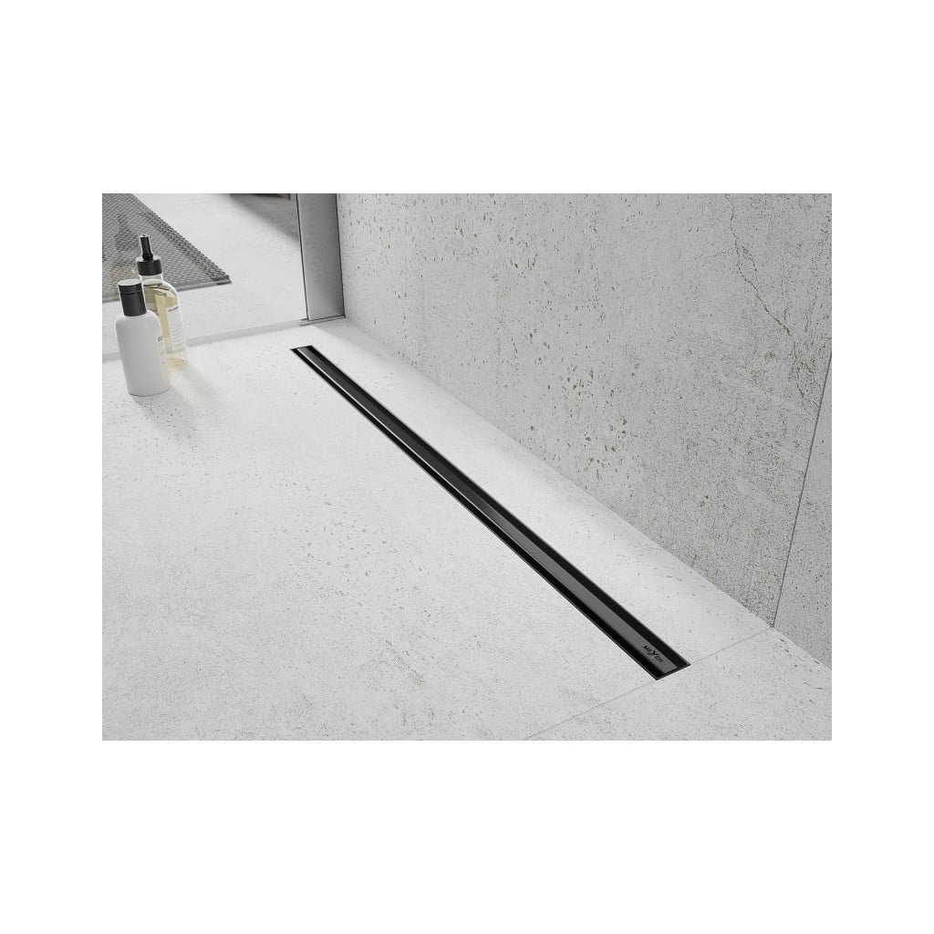 MEXEN Lapos rozsdamentes acél zuhanytálca 360°-ban forgatható szifonnal 80 cm, SLIM mintás, fekete, 1741080