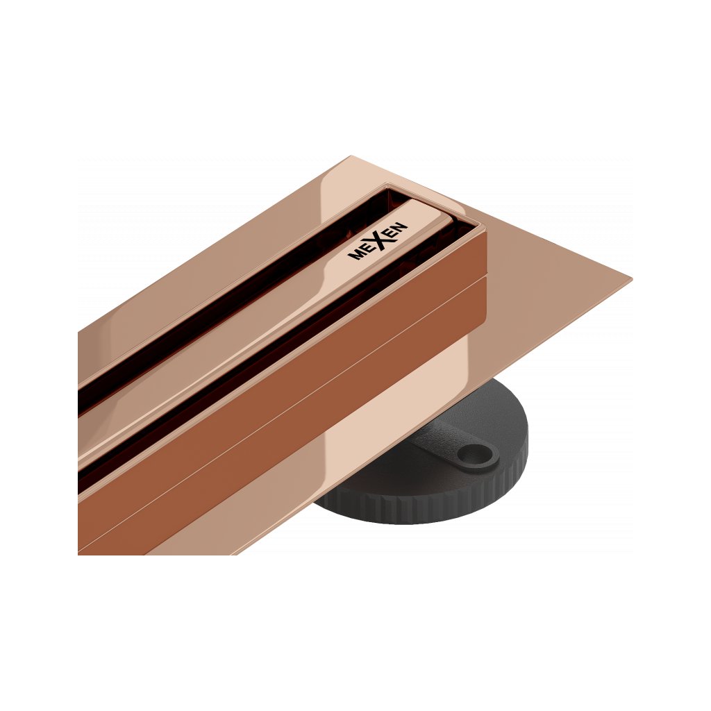 MEXEN Lapos rozsdamentes acél zuhanyfolyó 360°-ban forgatható szifonnal 80 cm, SLIM minta, rózsaszín-arany, 1641080