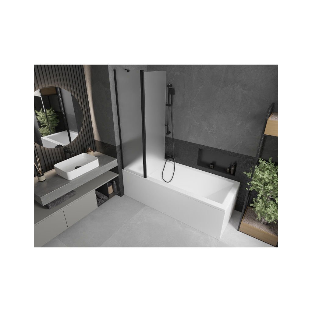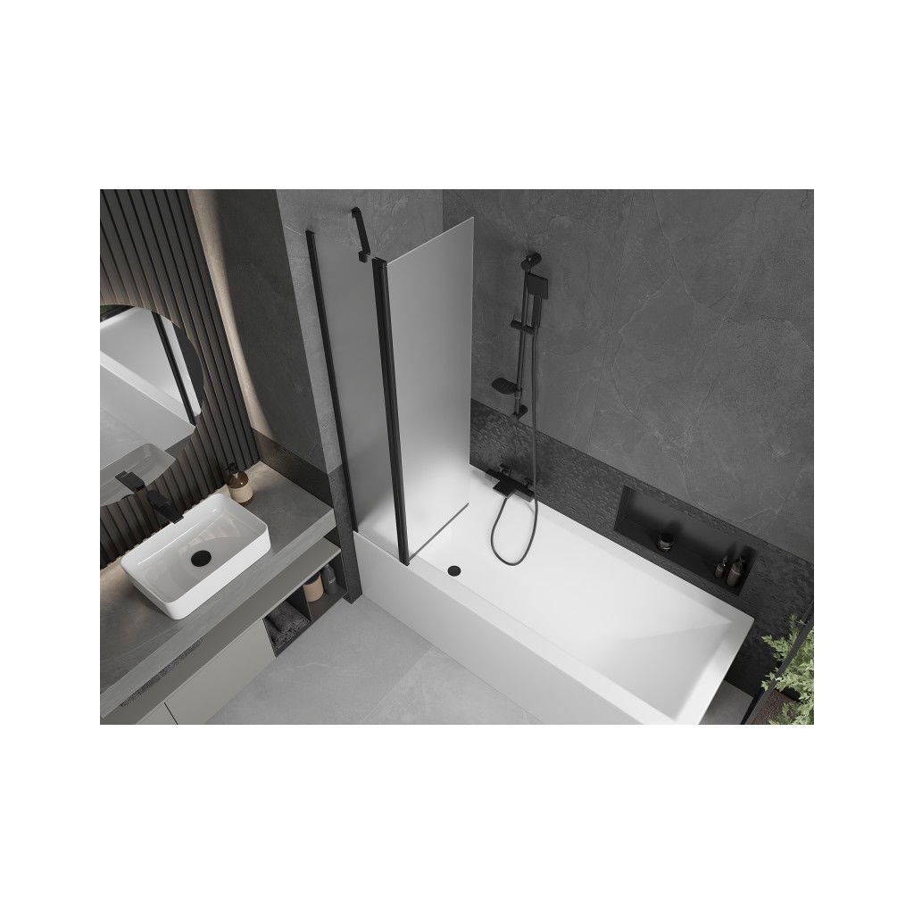 Mexen Flip, 1 szárnyú kádparaván 80 x 150 cm, 6 mm-es mattüveg, fekete profil, 894-080-101-70-30