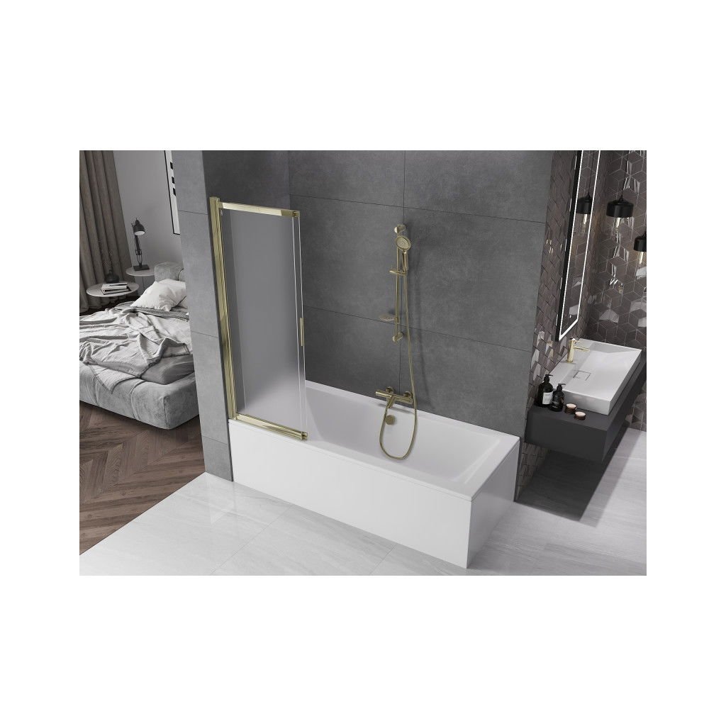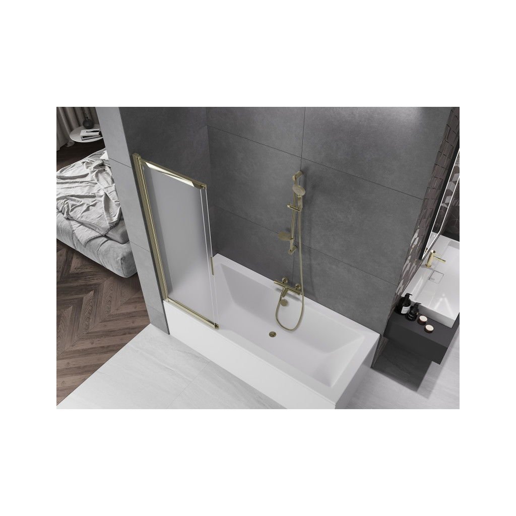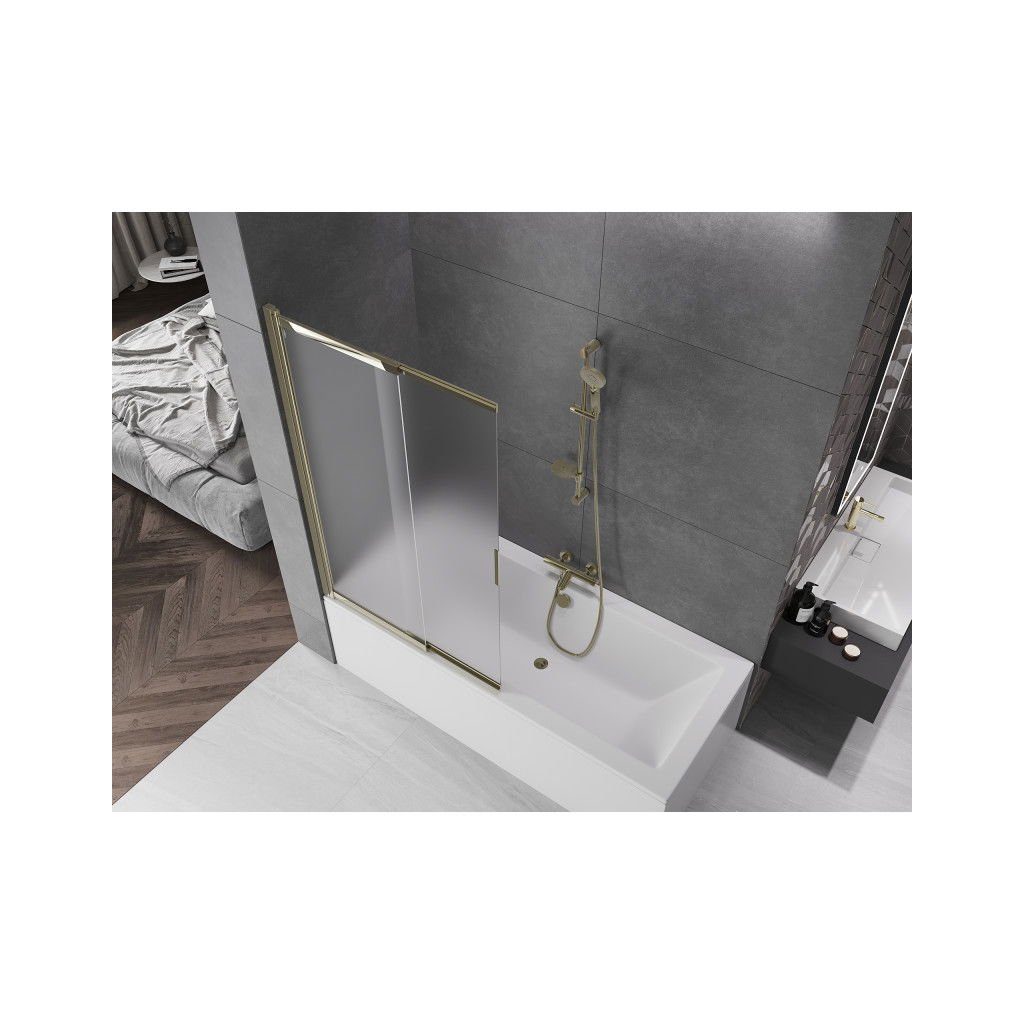 Mexen Fox, 2 szárnyas kádparaván 100x150 cm, 5 mm mattüveg, arany fényes profil, 891-100-002-50-30