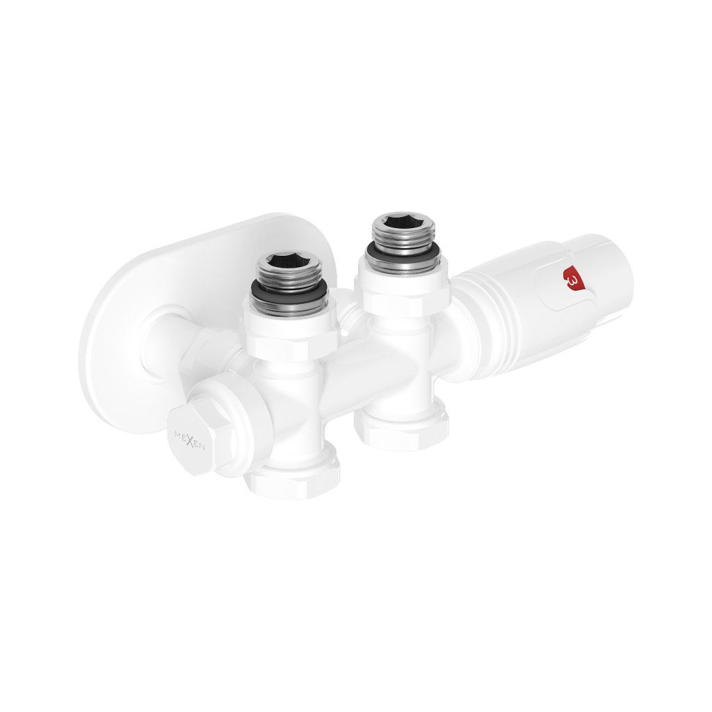 Mexen G00, Duplex termosztatikus készlet kerek kupakkal, szög/egyenes csatlakozás DN50, fehér, W908-900-905-20